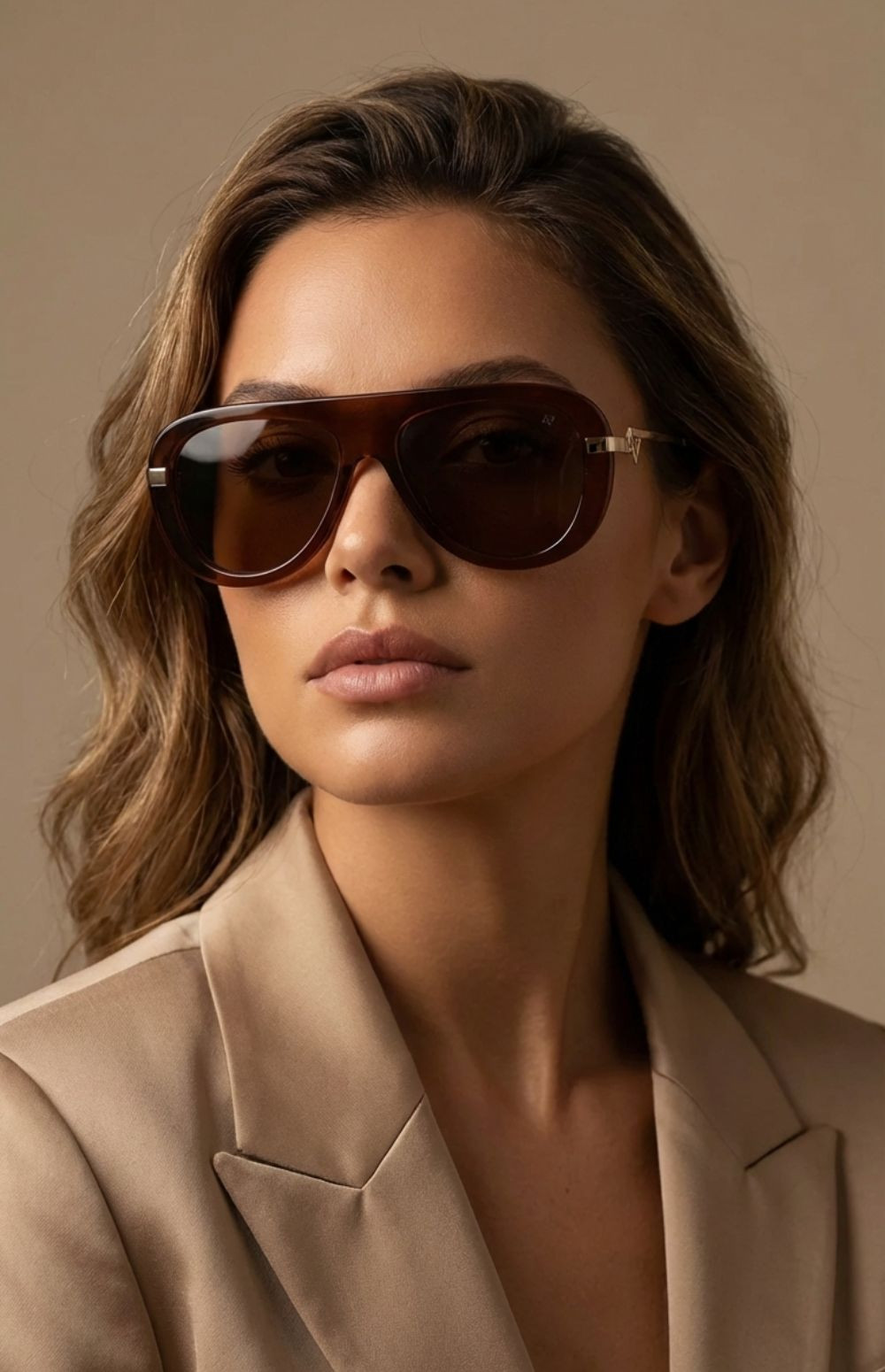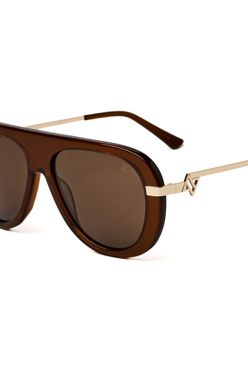 A bold, architectural silhouette designed with refined detailing. ALEXIA in Brown features a warm transparent acetate front paired with gold-tone metal temples and deep brown lenses. Strong in structure yet elegant in finish, it blends modern attitude with timeless sophistication. Best suited for medium to wide faces.