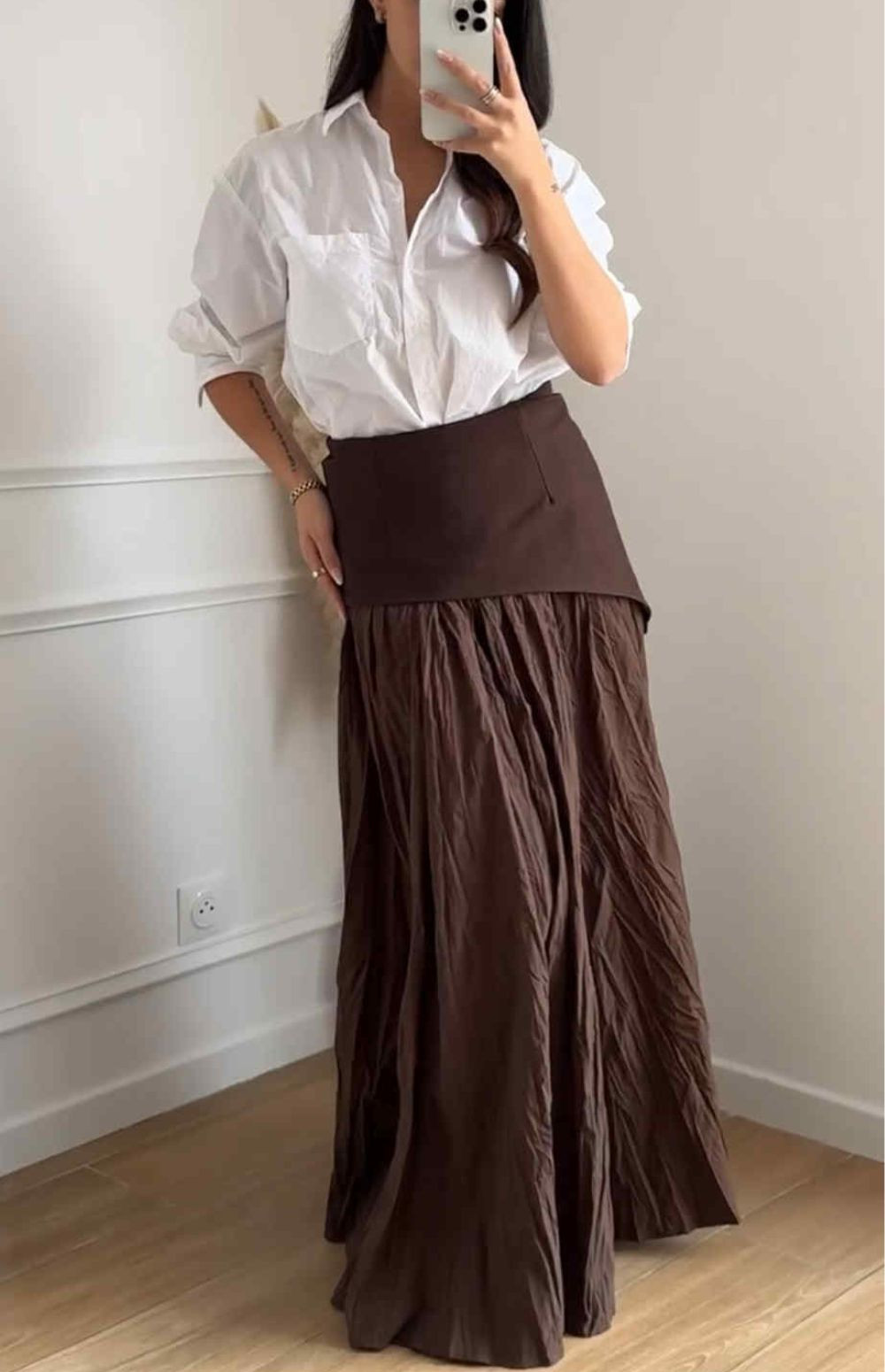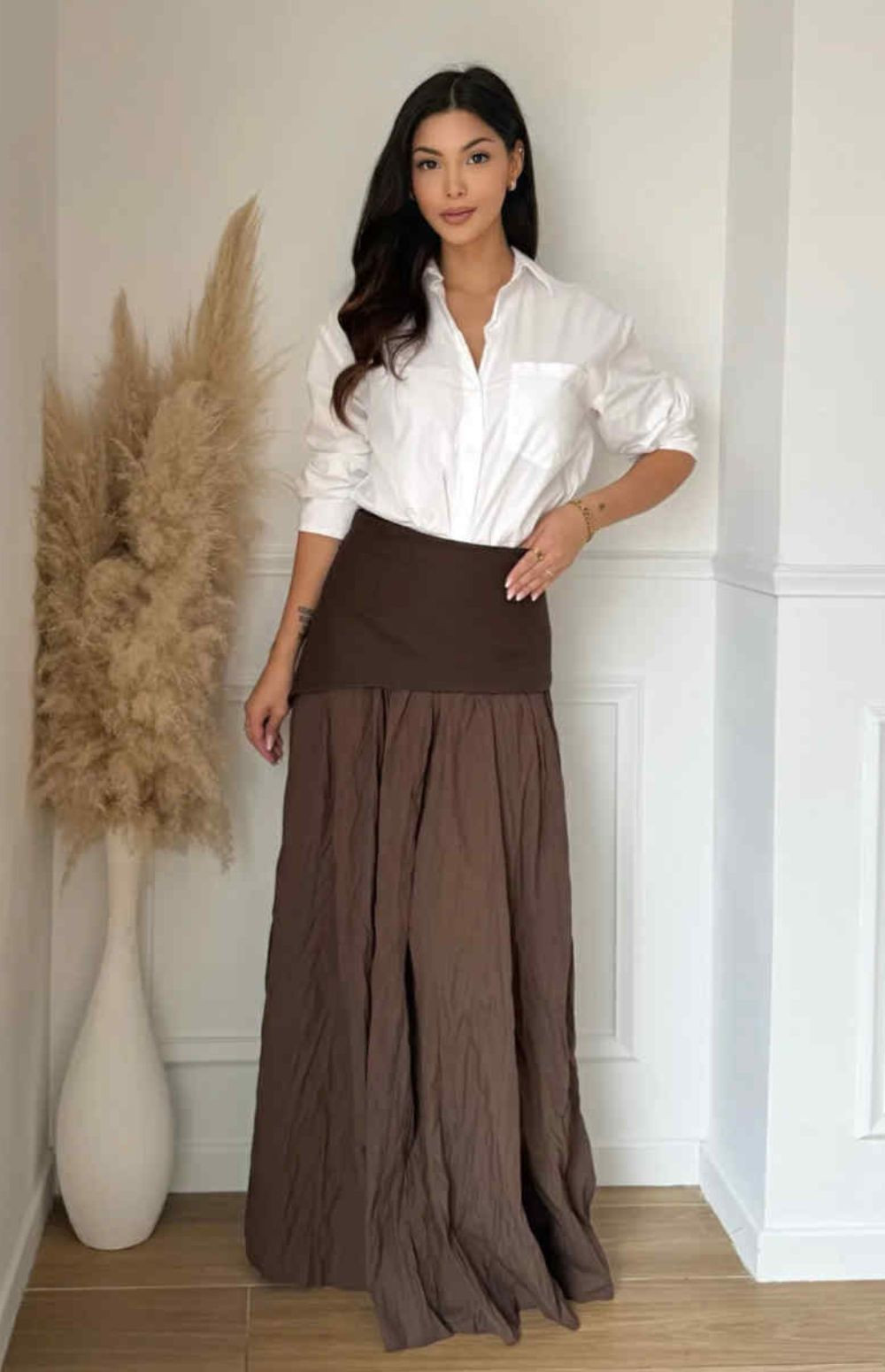 Maxi skirt with asymmetric pleated design