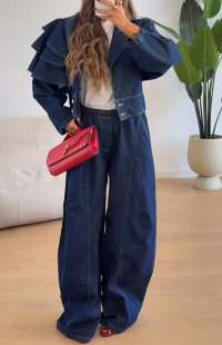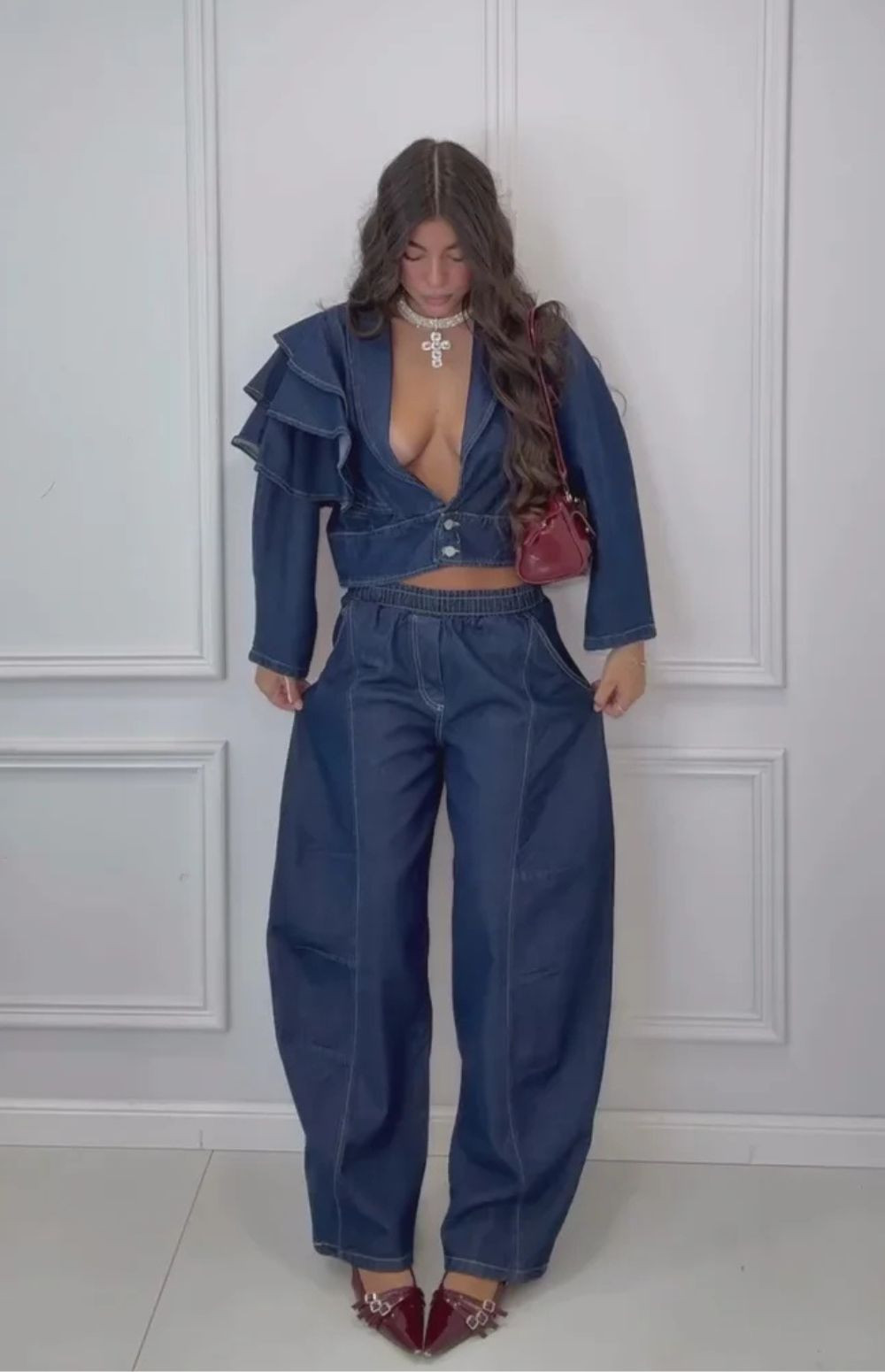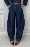 Relaxed barrel jeans with soft denim and an elastic waist for easy comfort and style.