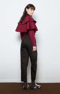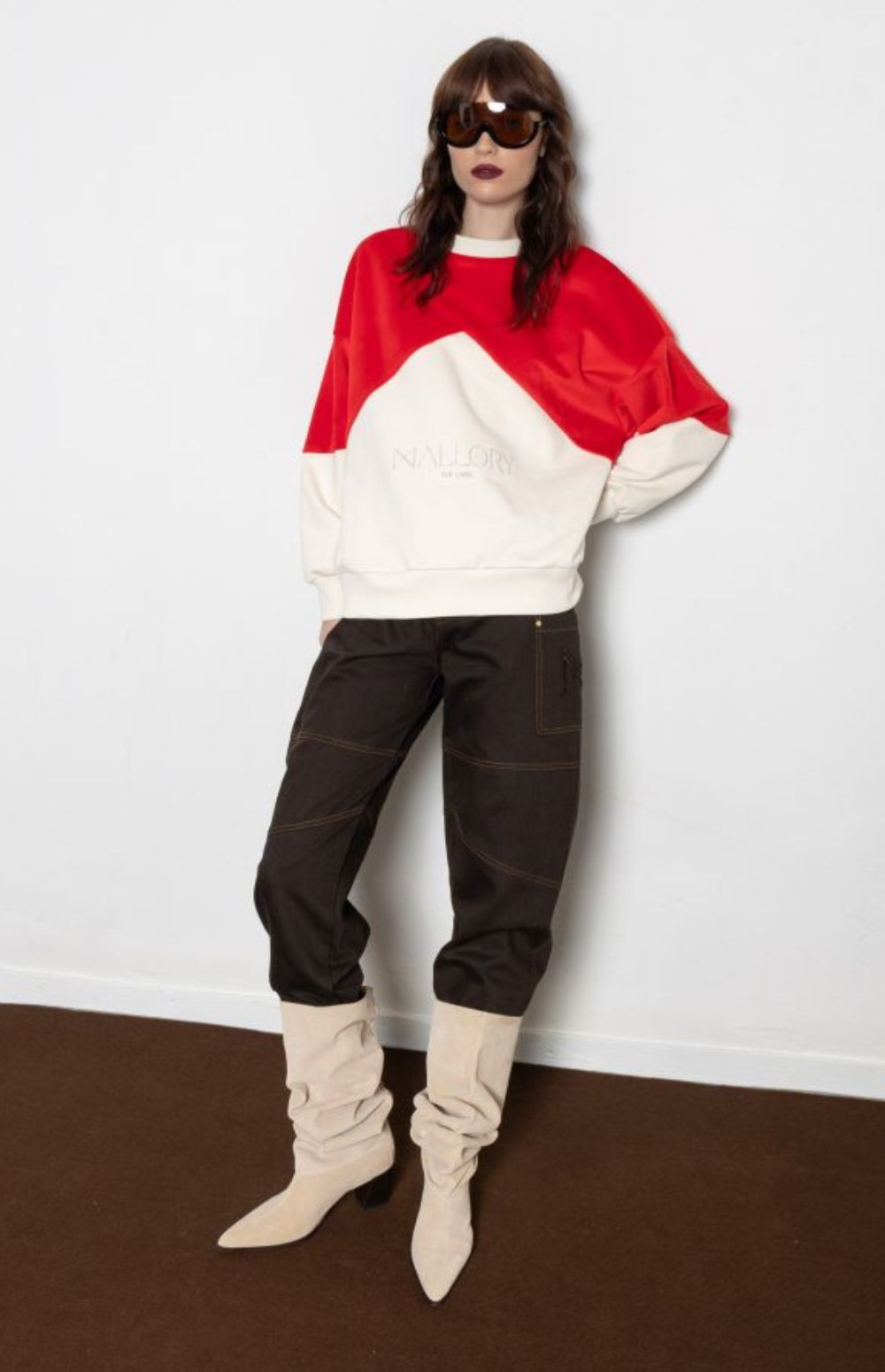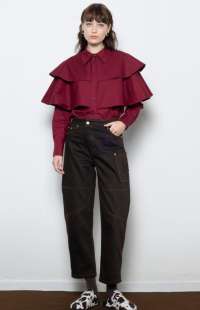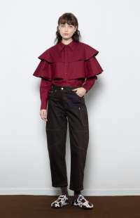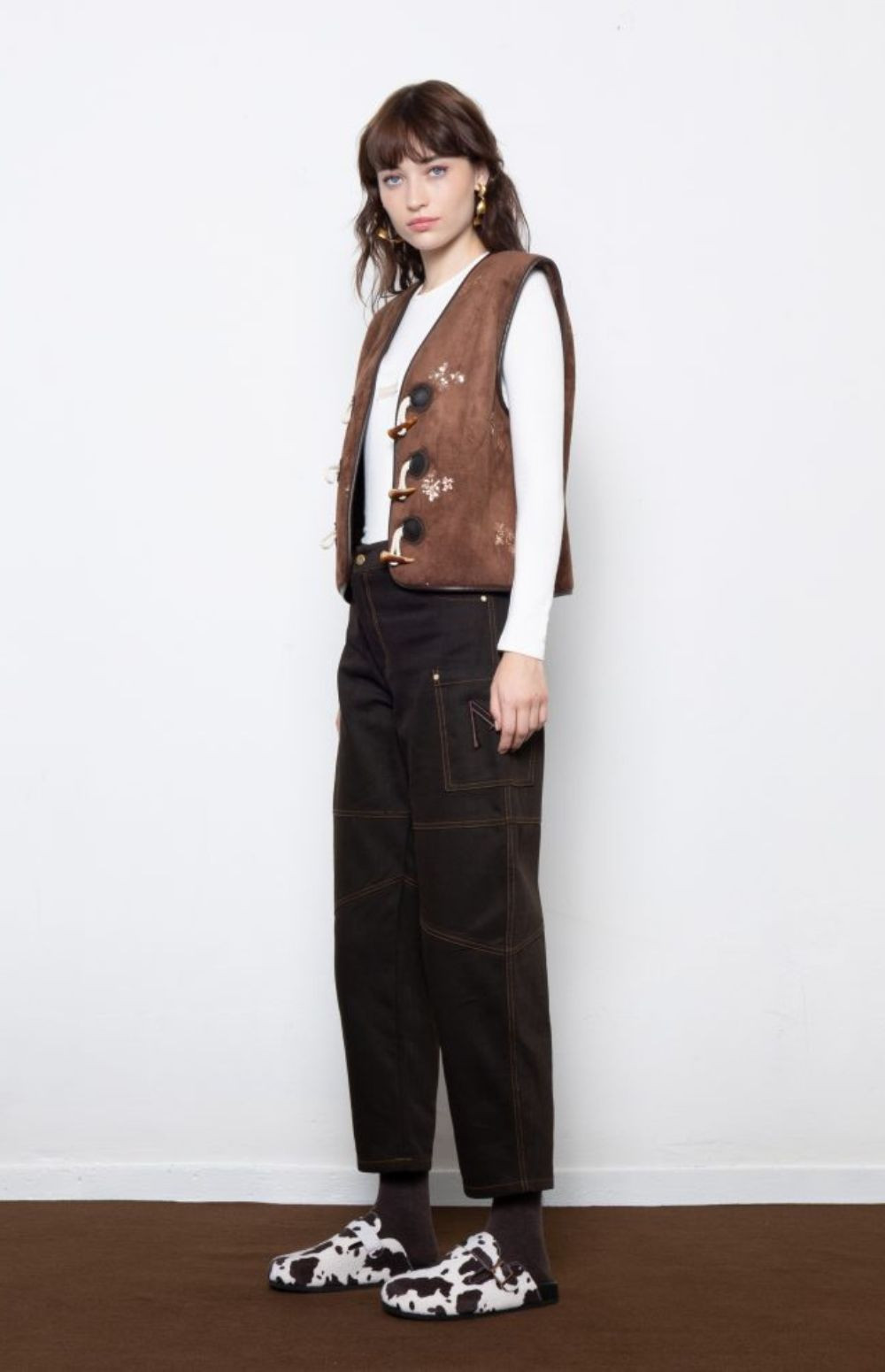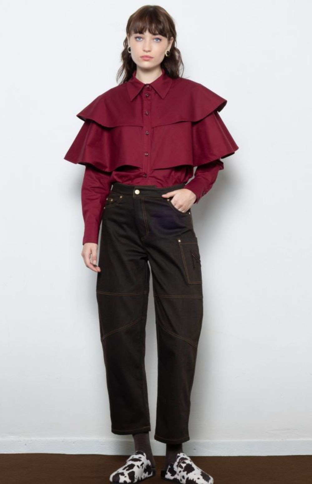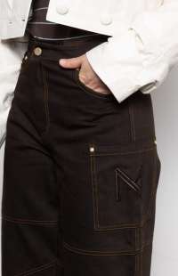 Structured classic brown barrel denim pants with contrast stitching logo and utility pocket detailing —bold, durable, and effortlessly cool.