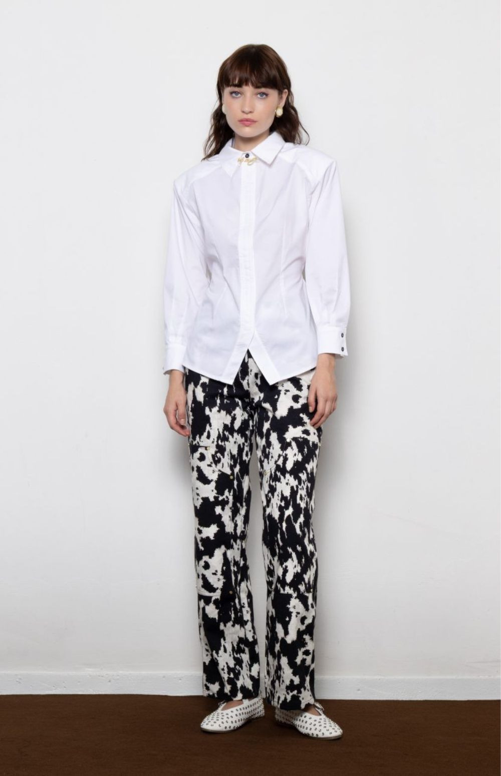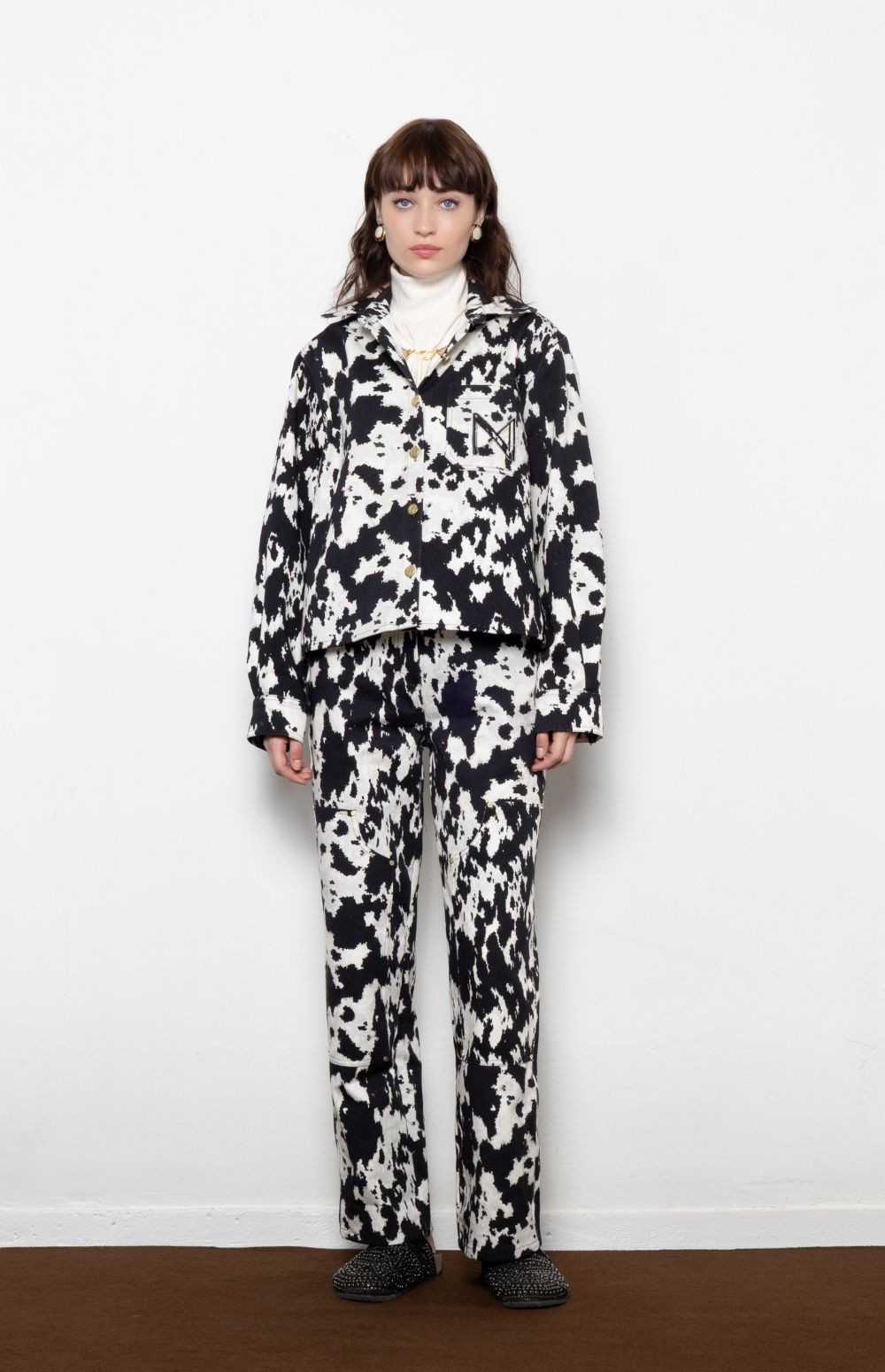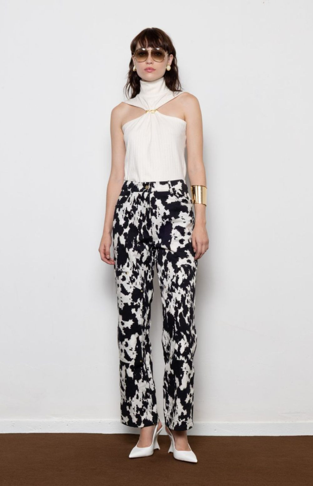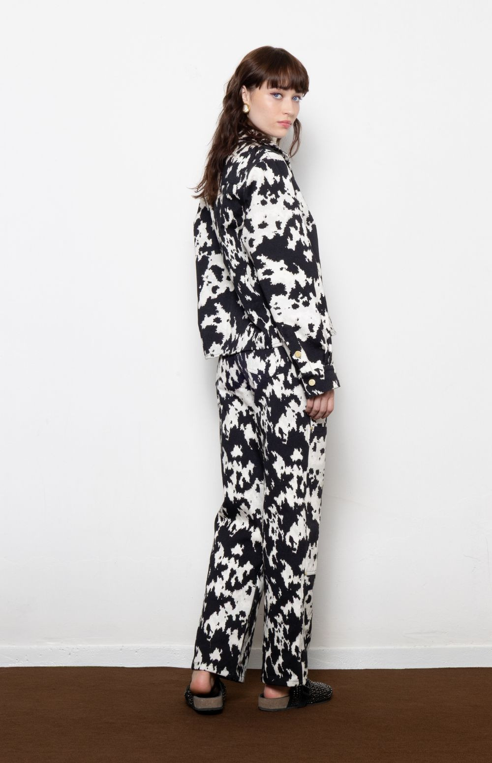Make a bold statement with these high-waisted straight-leg jeans, featuring a striking black and white abstract print. Designed to add edge to any wardrobe, these jeans combine effortless comfort with standout style. Cut with a relaxed fit through the leg, they offer both versatility and personality — perfect for dressing up with heels or pairing down with sneakers.