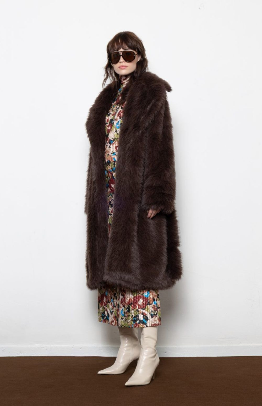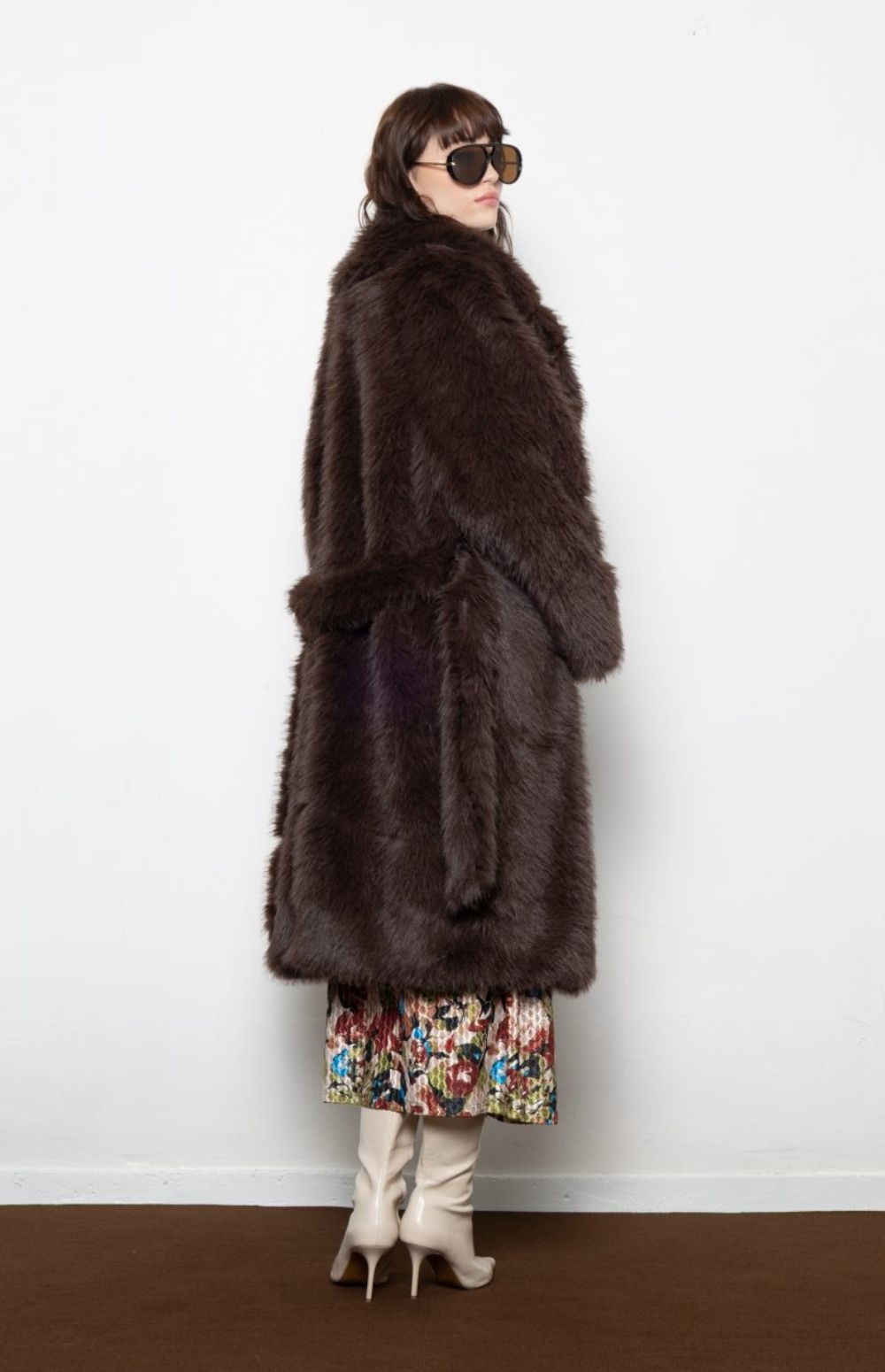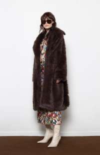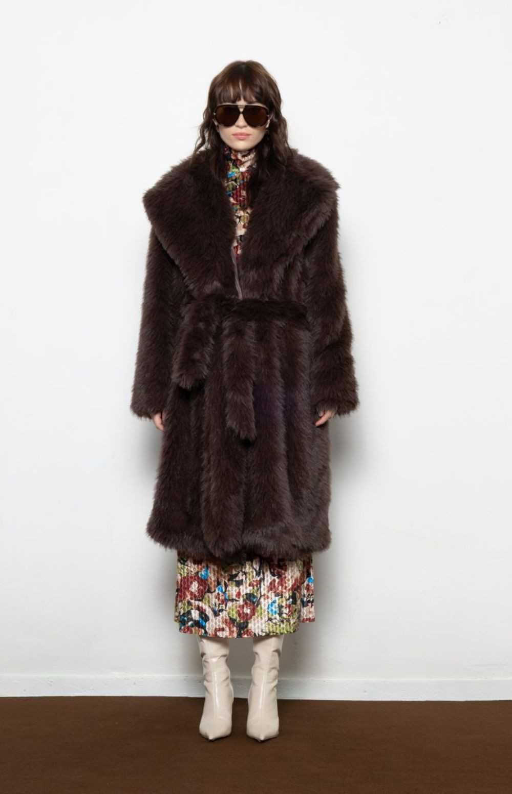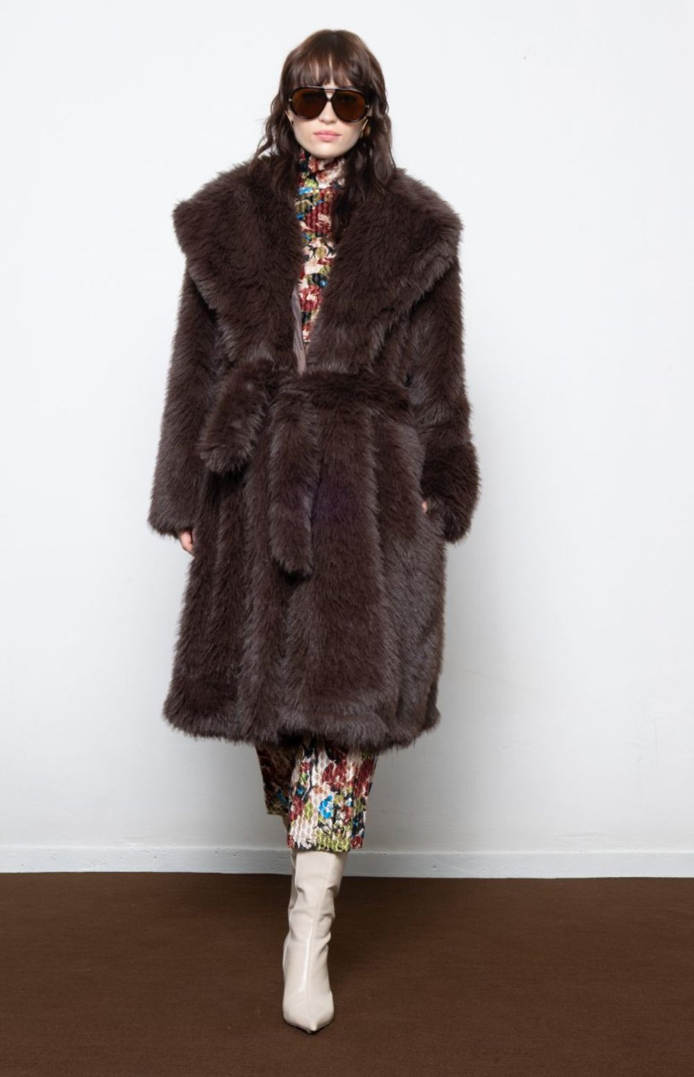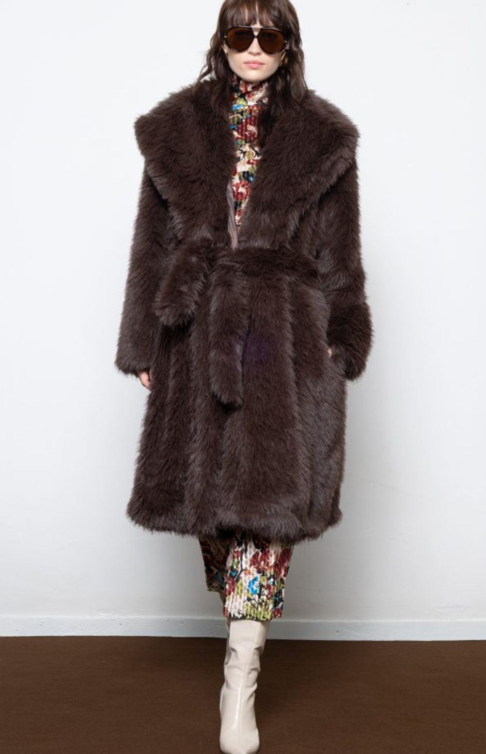 Plush faux fur coat with oversized collar and waist tie —bold, cozy, and unapologetically luxe.