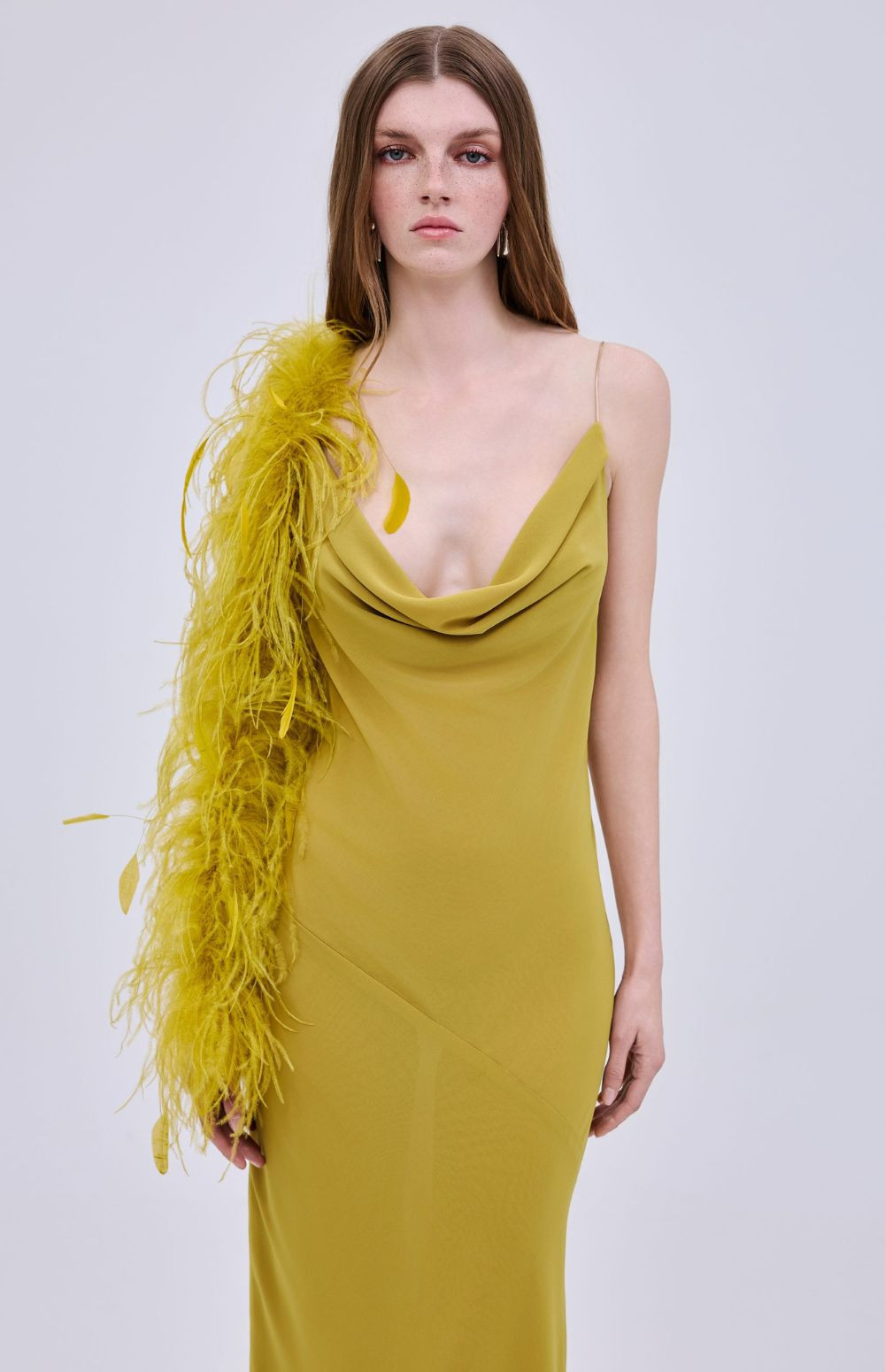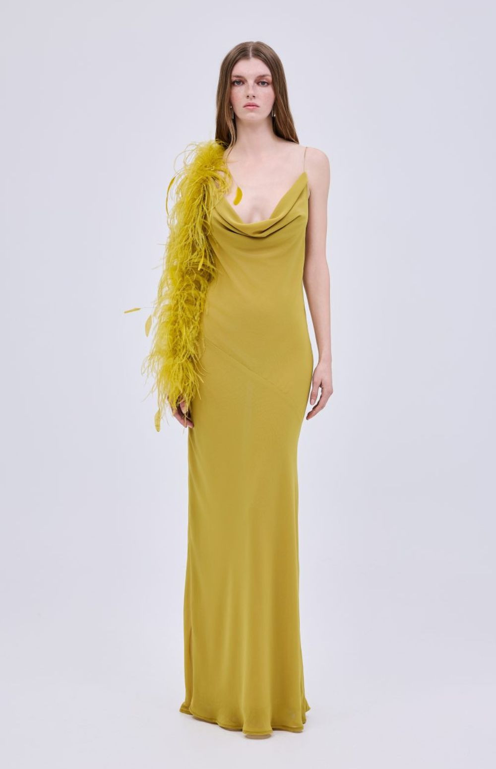 CHIFFON FEATHER MAXI DRESS