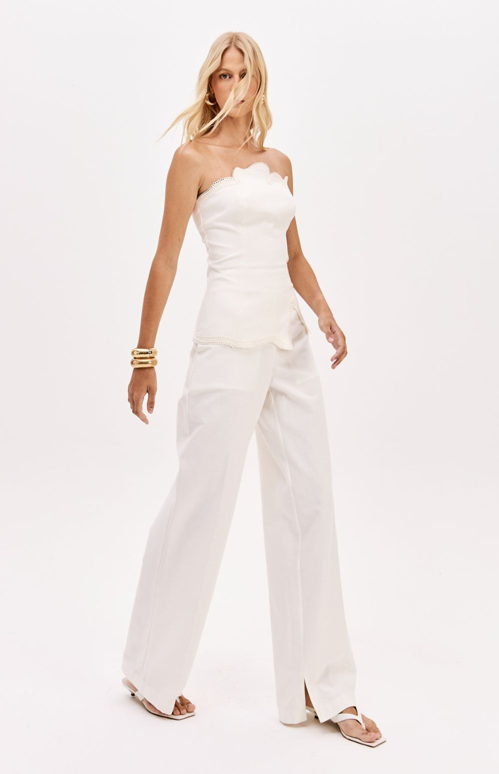 High-waisted straight-leg pants Fit: Designed to elongate the silhouette with a structured waist.