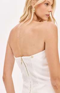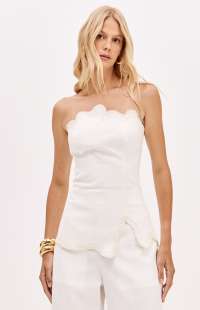 Made from a substantial woven fabric, this corset blouse features embroidered trim at the hem and neckline, as well as a fitted shape that elegantly accentuates the body. The zipper and elastic closure at the back ensure maximum comfort.