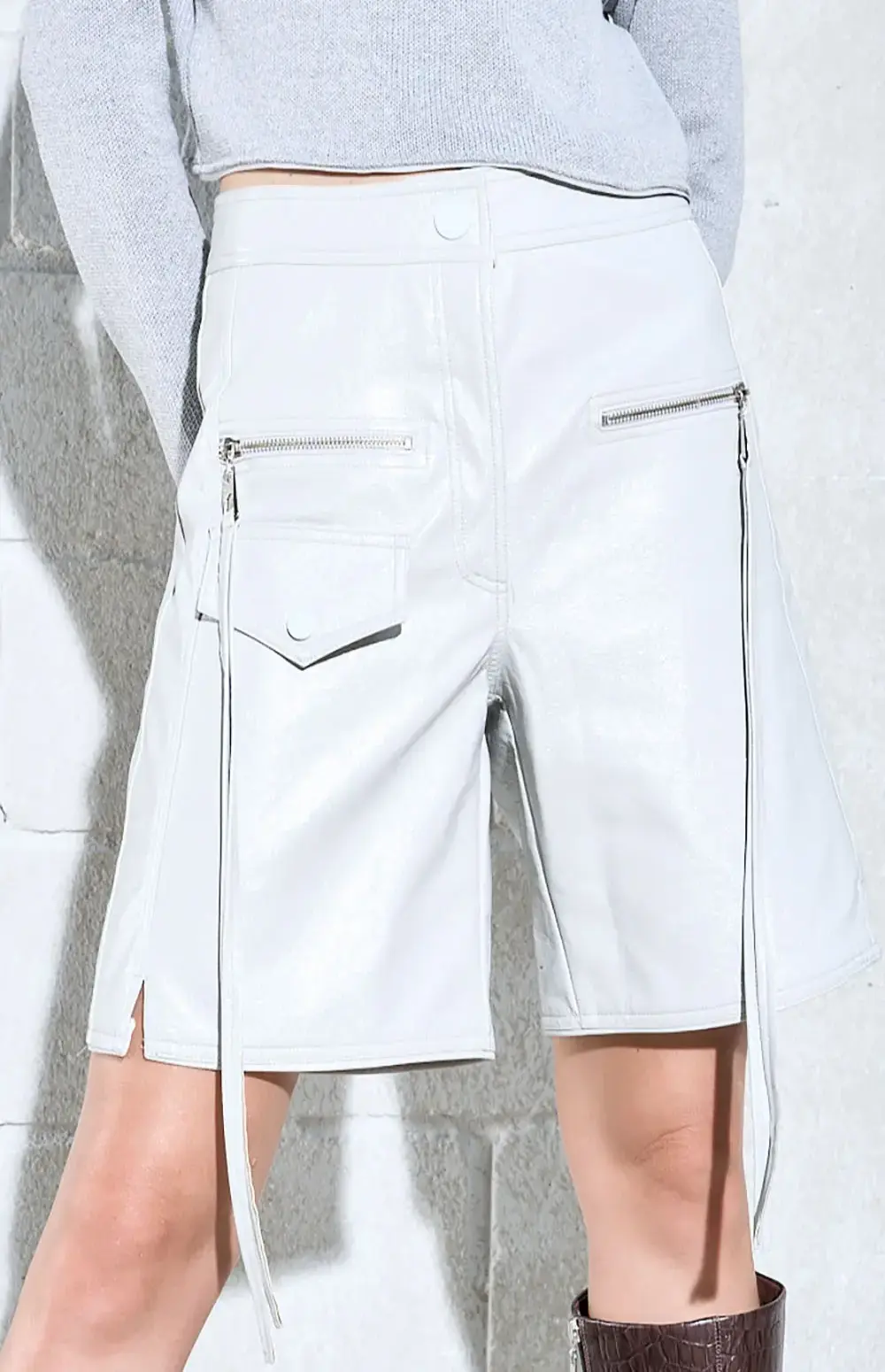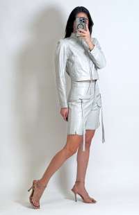Faux leather jacket with zipper & faux leather bermuda with zipper pockets