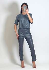 These Faux Leather Top & Zipper Pants are the perfect piece for a modern and bold look. Their sophisticated and stylish design, with a fitted fit and faux leather texture, adds a touch of attitude and elegance to any outfit. The combination of comfort and style makes them a versatile choice for a variety of occasions, from casual to sophisticated. Get ready to rock this statement piece!