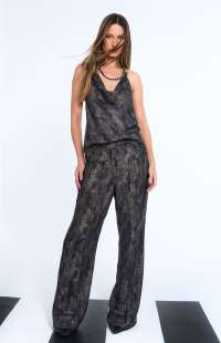 Printed Blouse with Strap Detail & Wide-Leg Pants with Fluid Print
