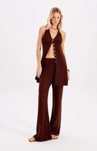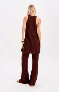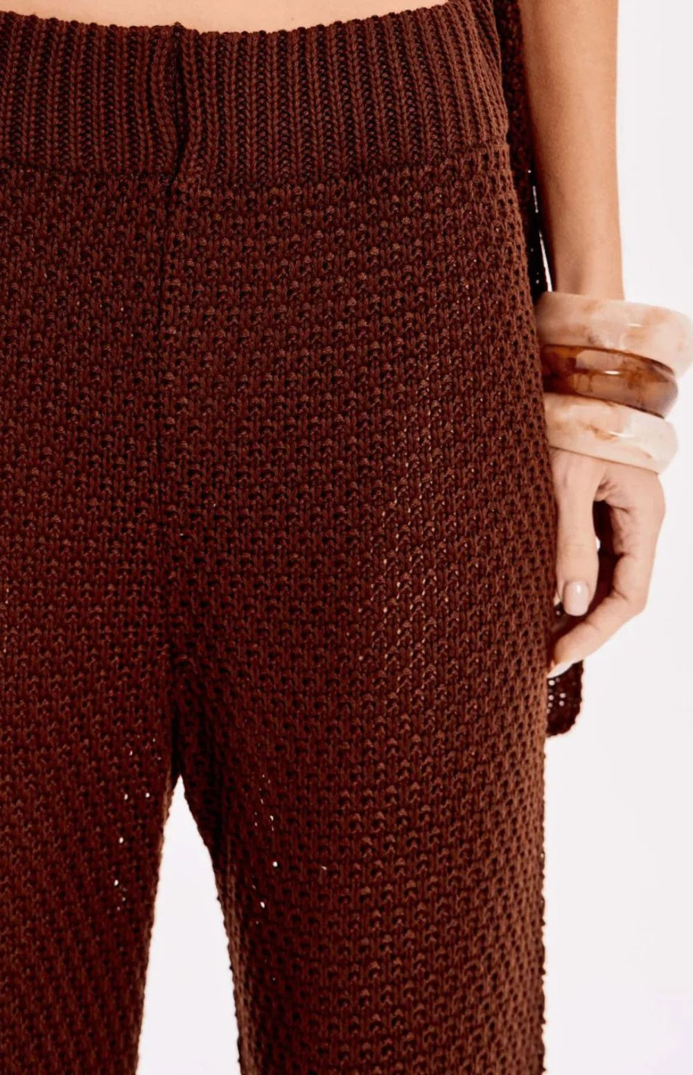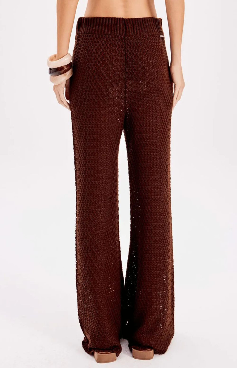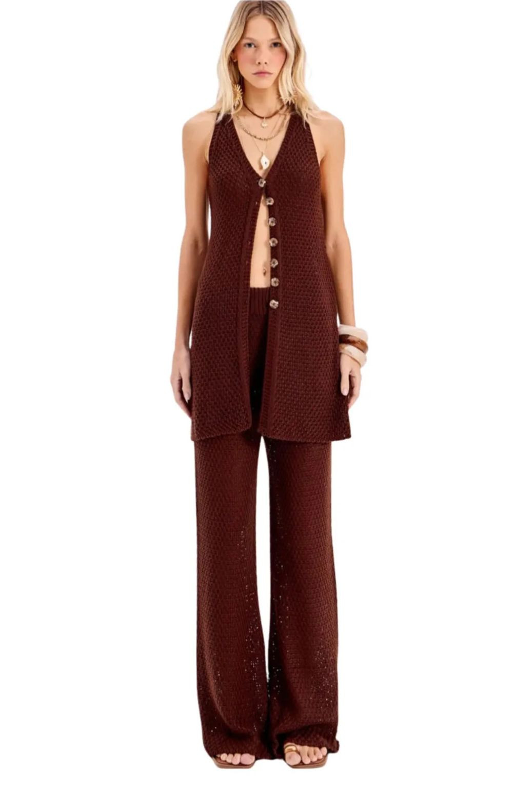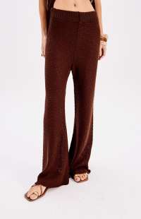 These knit pants feature a high waist, straight cut, and relaxed fit. The substantial texture enhances the look and adds personality to the outfit. Perfect for combinations that balance comfort and style with a handmade feel.