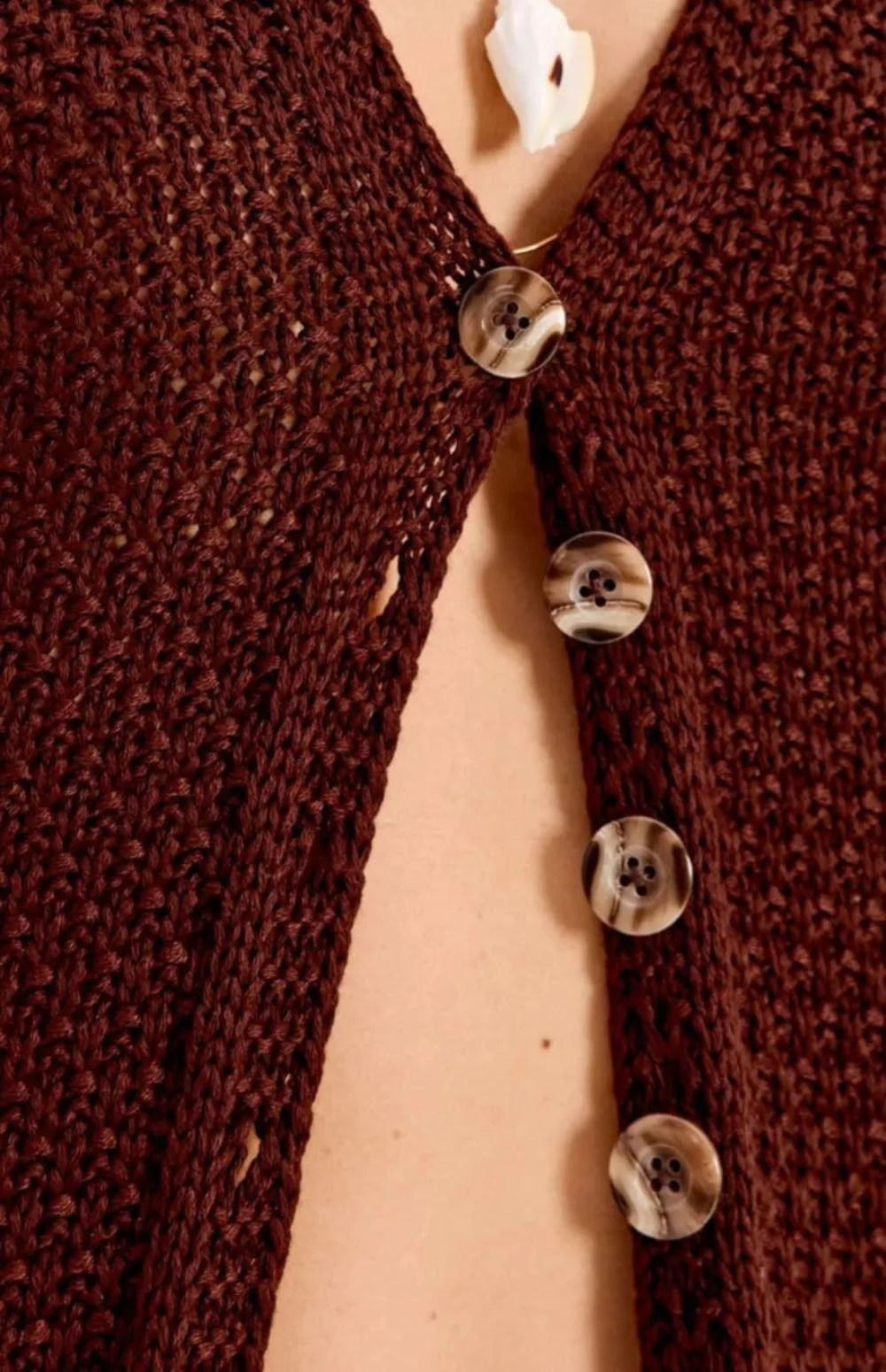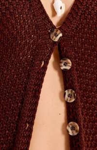 Straight. Neckline: V-neck (Deep). Closure: Button. Model wears size S.