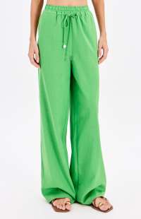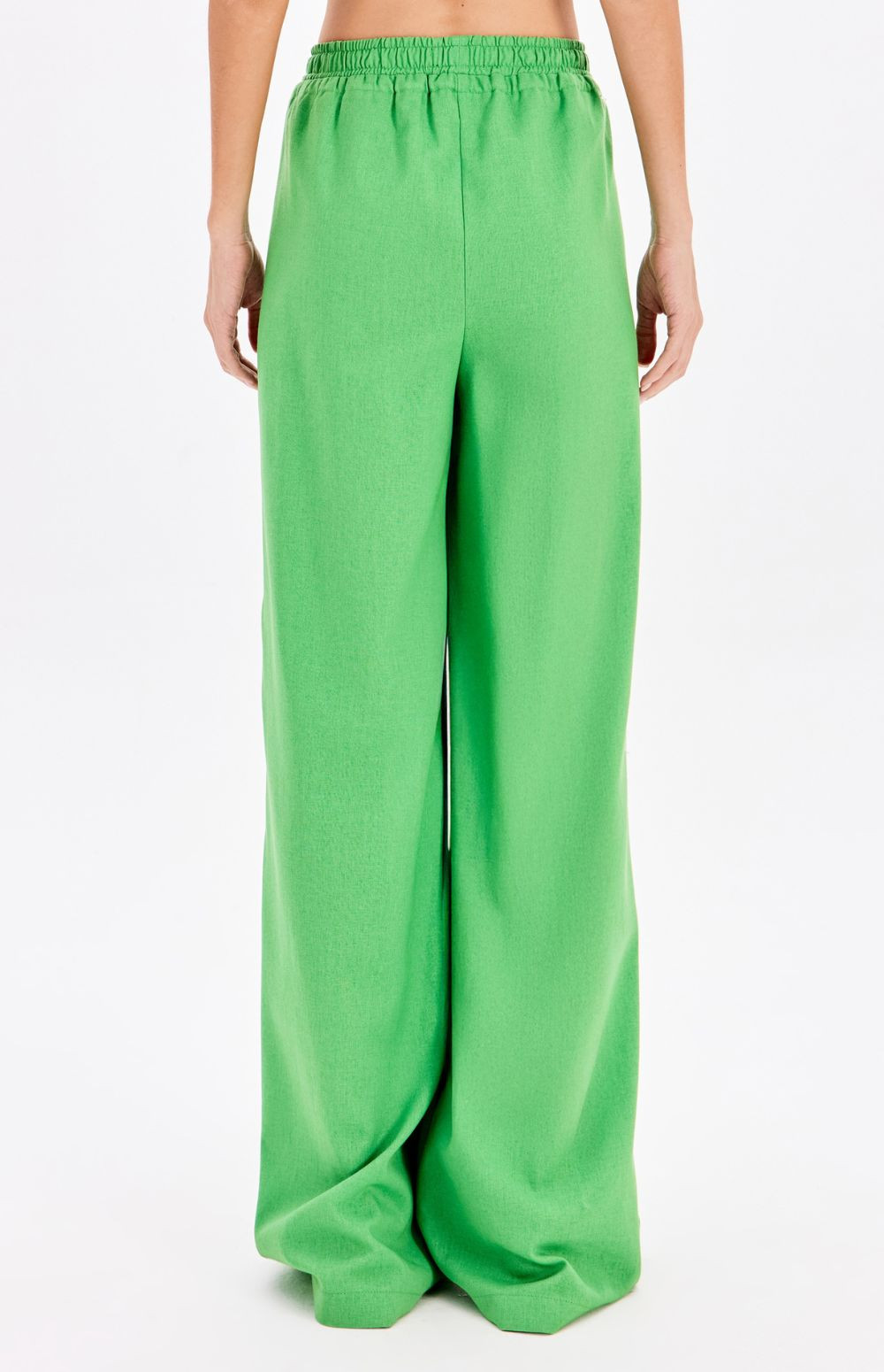 These full-length pants are made from linen fabric. They have a relaxed fit, a mid-rise waist with an elasticated waistband and adjustable drawstring. They transition seamlessly from beachwear to urban looks with their fluidity.