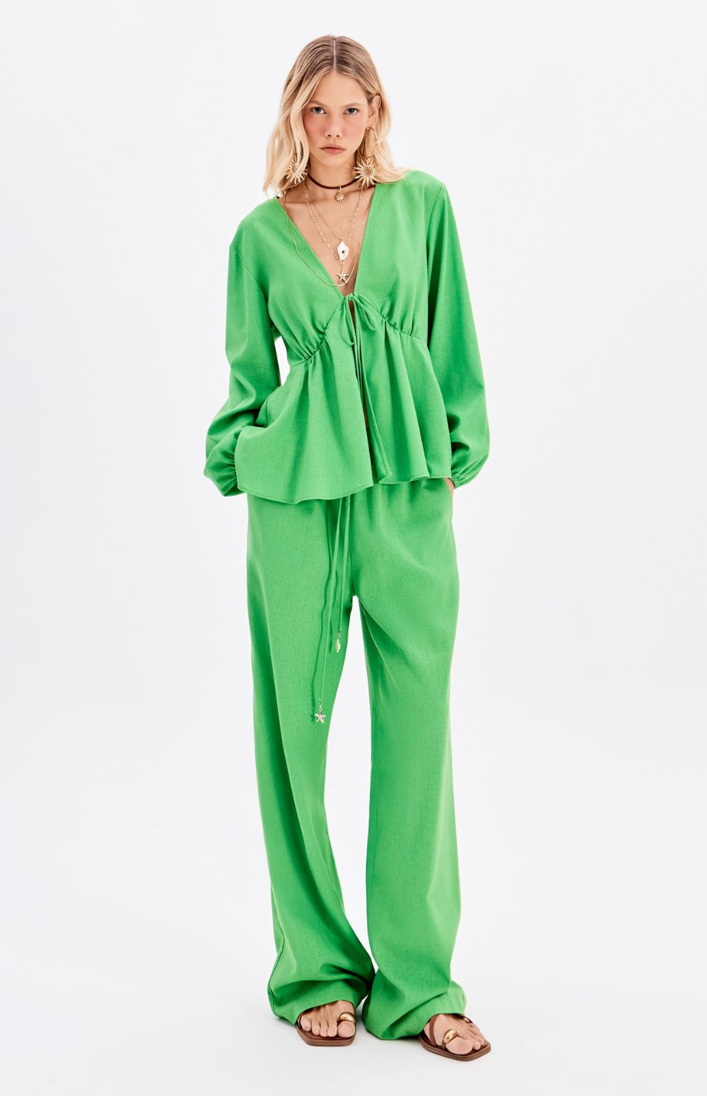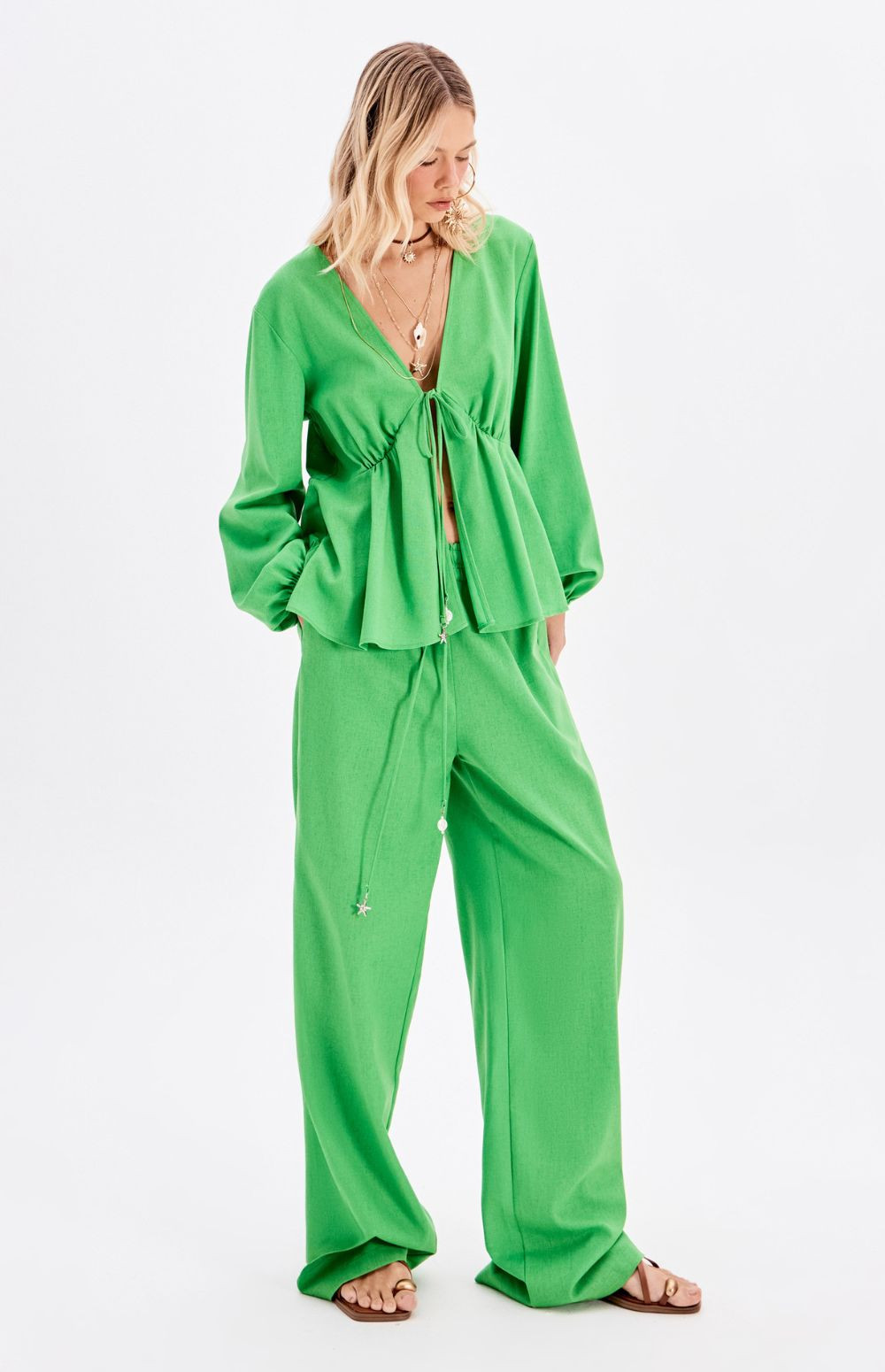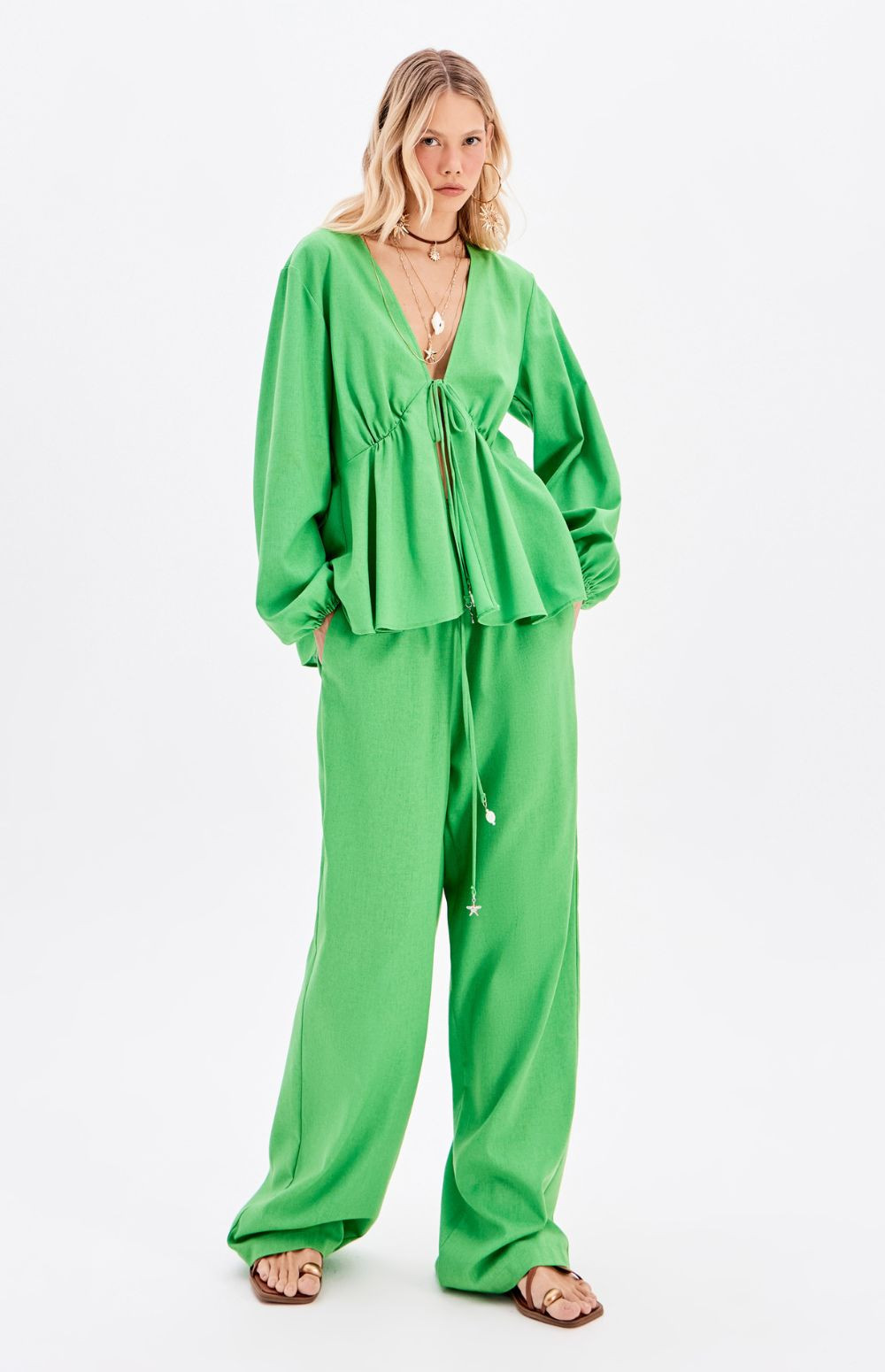 CO-ORD LINEN | TIE BLOUSE & TROUSERS