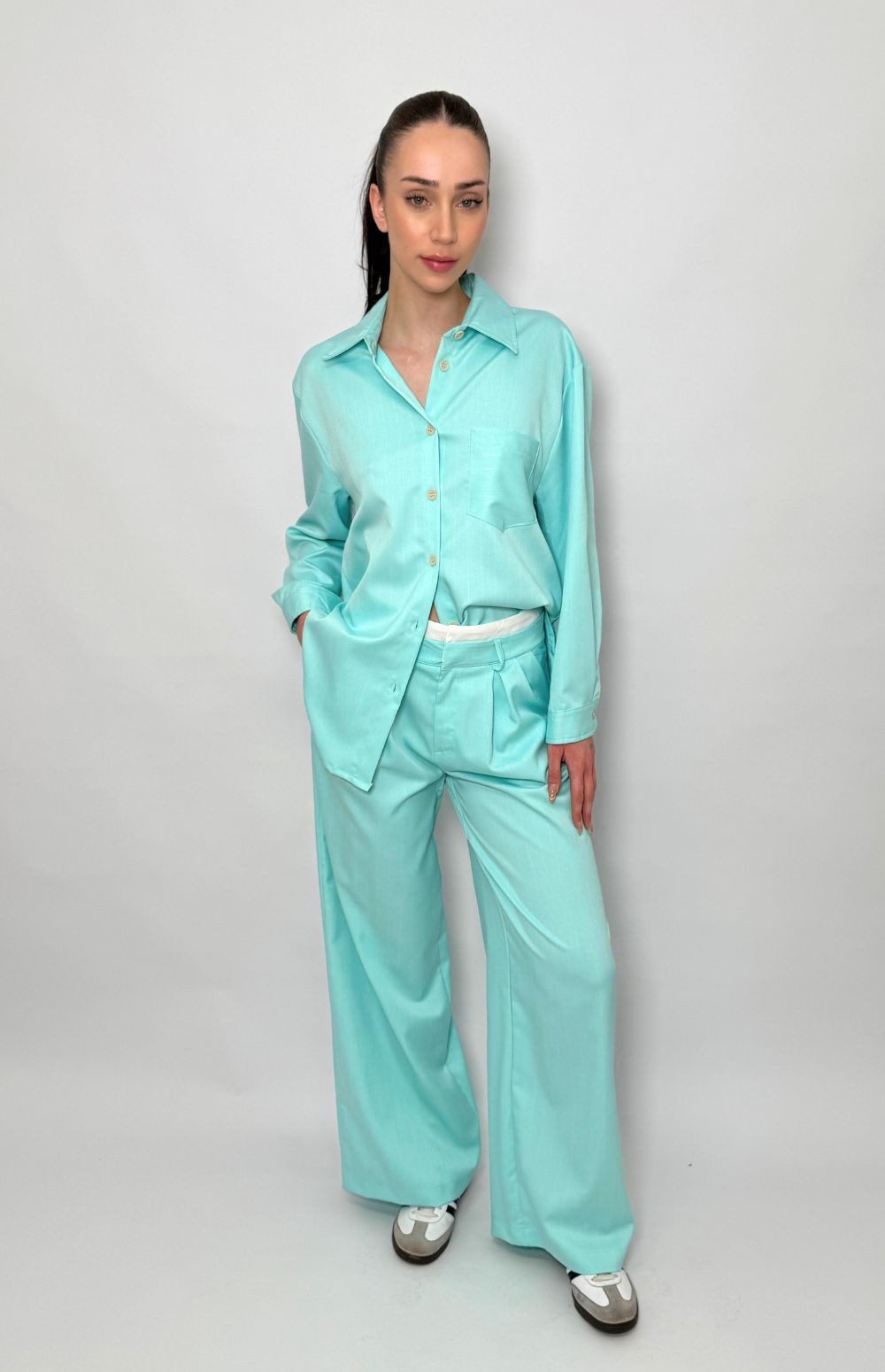 • Pleats at the front