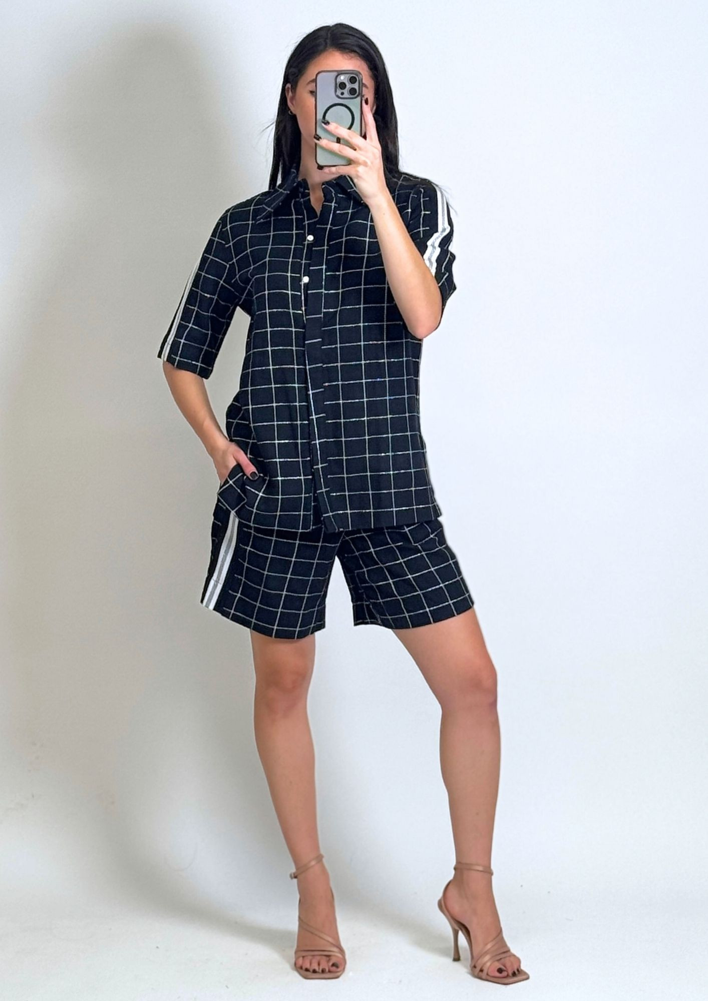 Plaid Linen Shirt & Urban Plaid Tailored Bermuda Shorts