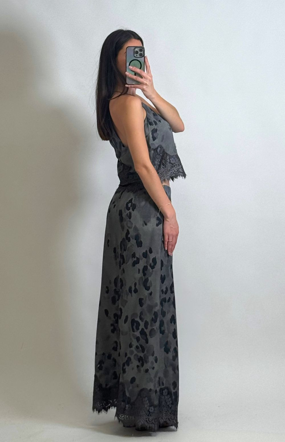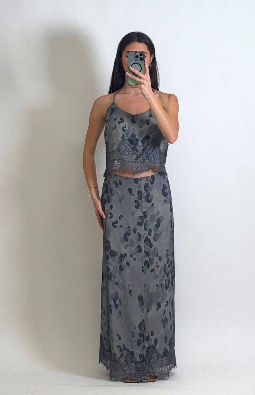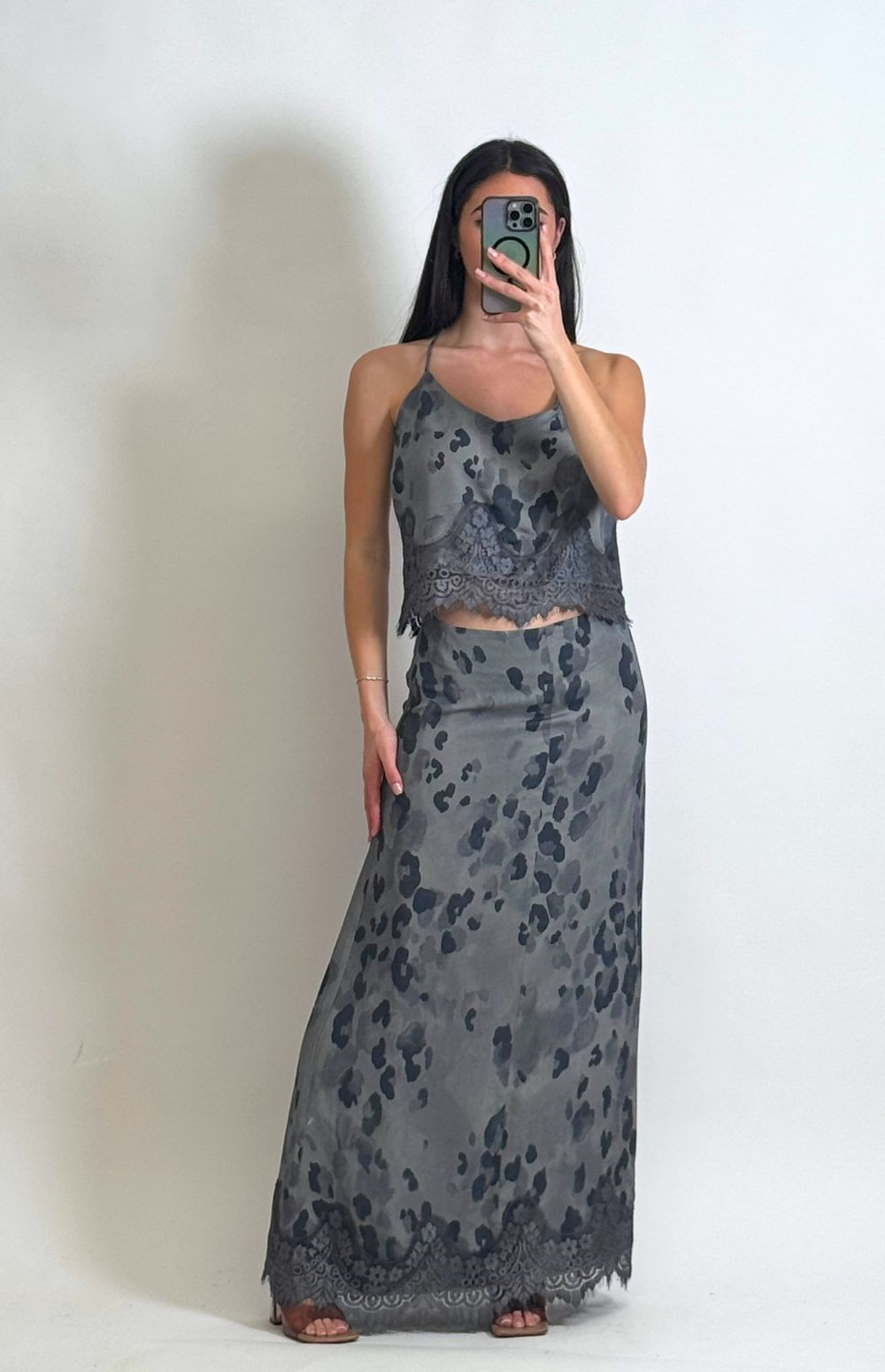 Embroidered Women's Blouse with Rebel Feline Print & Rebel Feline Print Midi Skirt