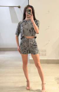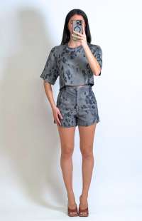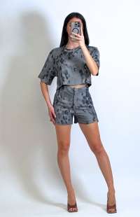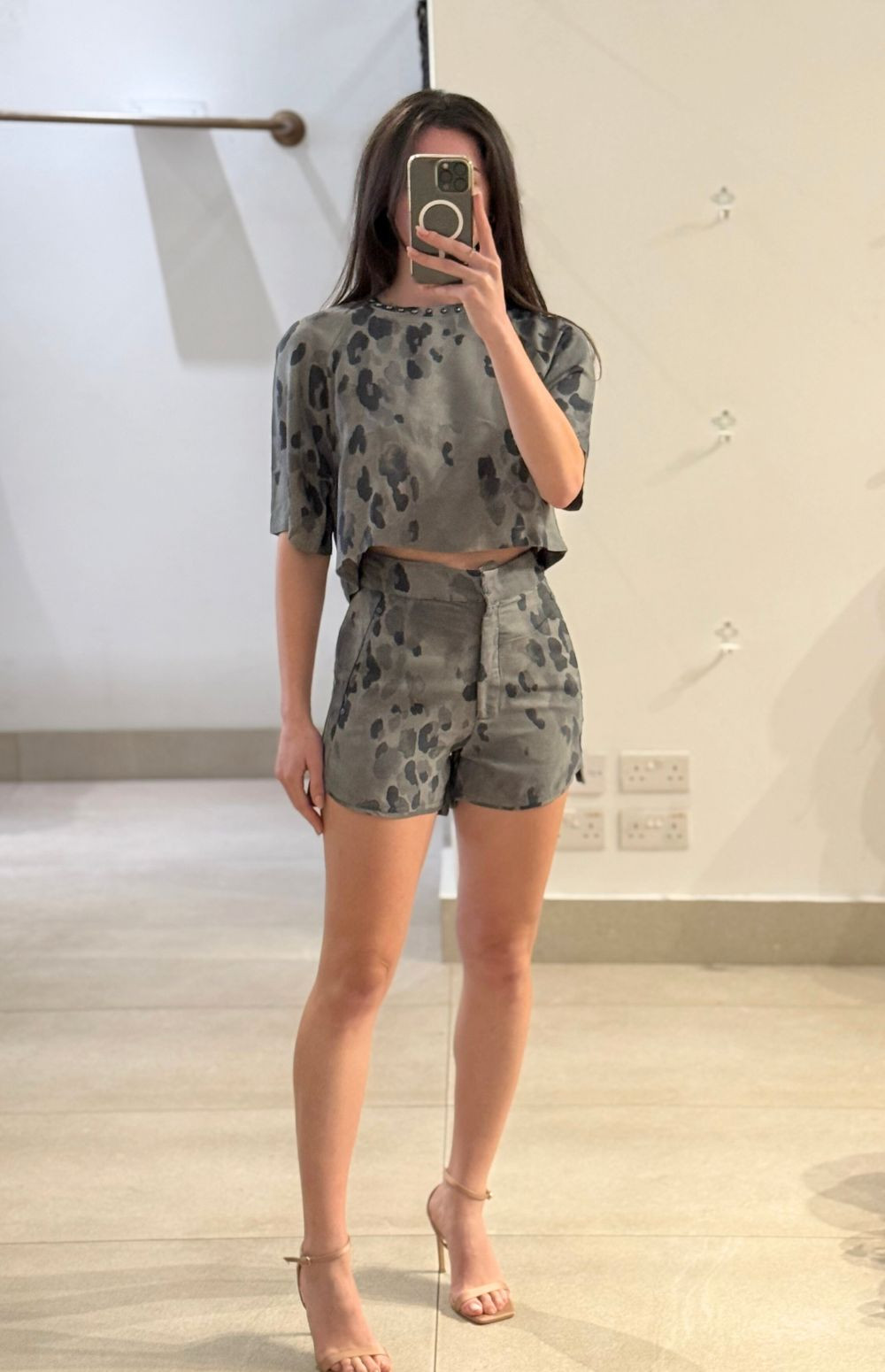 Crop top with with Rebel Feline Print & Rebel Feline Print Shorts