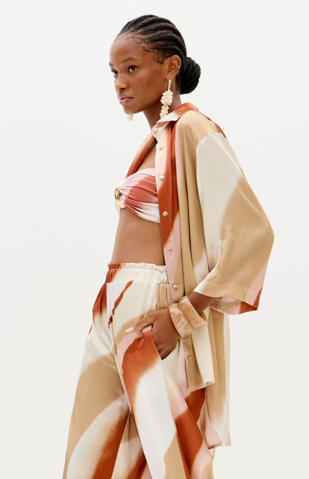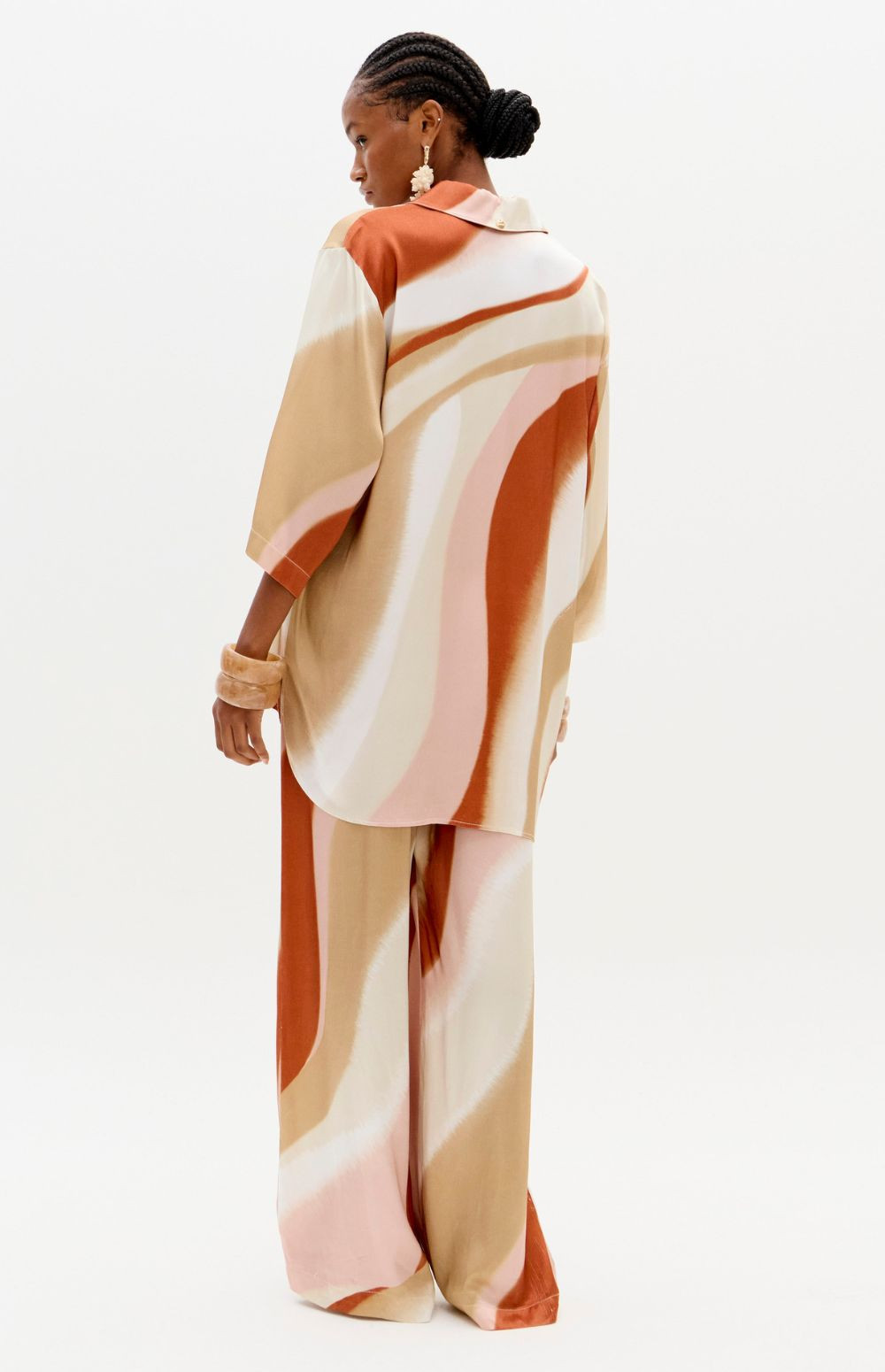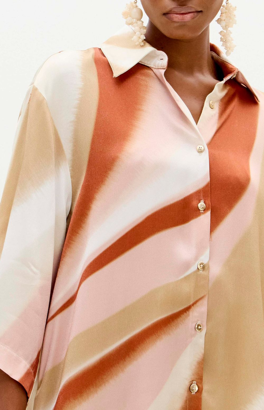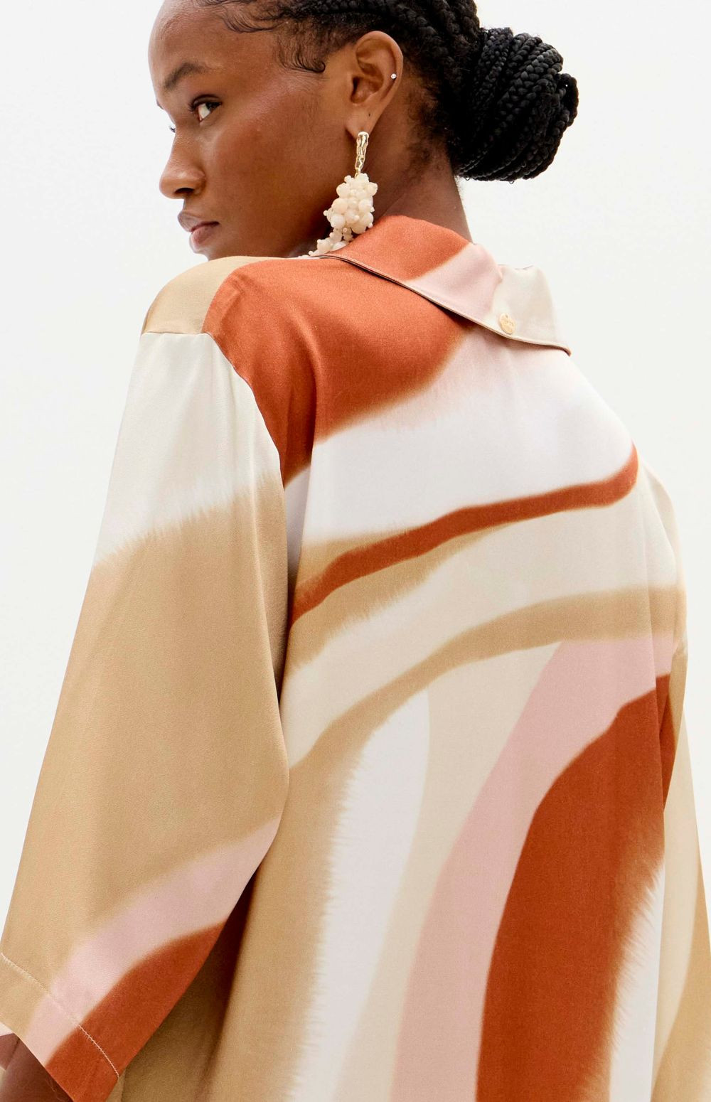 Features: It features a front button fastening and mid-length sleeves that enhance its flowy, effortless drape