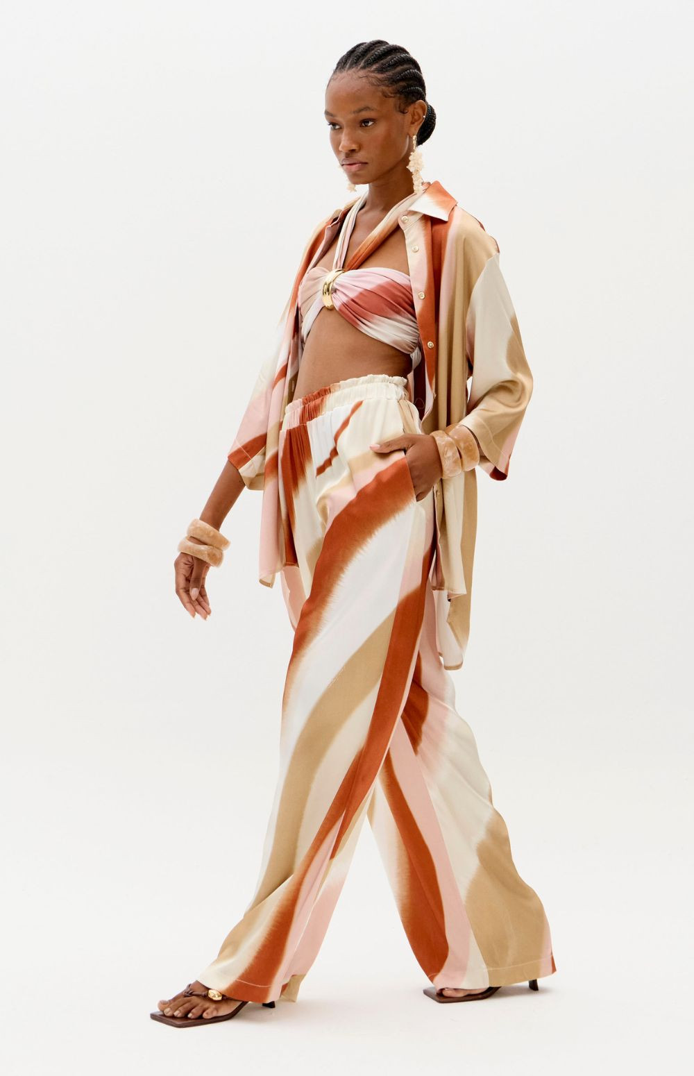 Trouser: A high-waisted, wide-leg style that creates a long, sophisticated silhouette