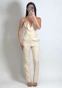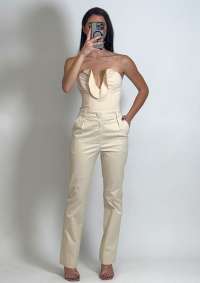 Top: Strapless model, light and structured fabric, delicate ruffle on the neckline, impeccable fit.