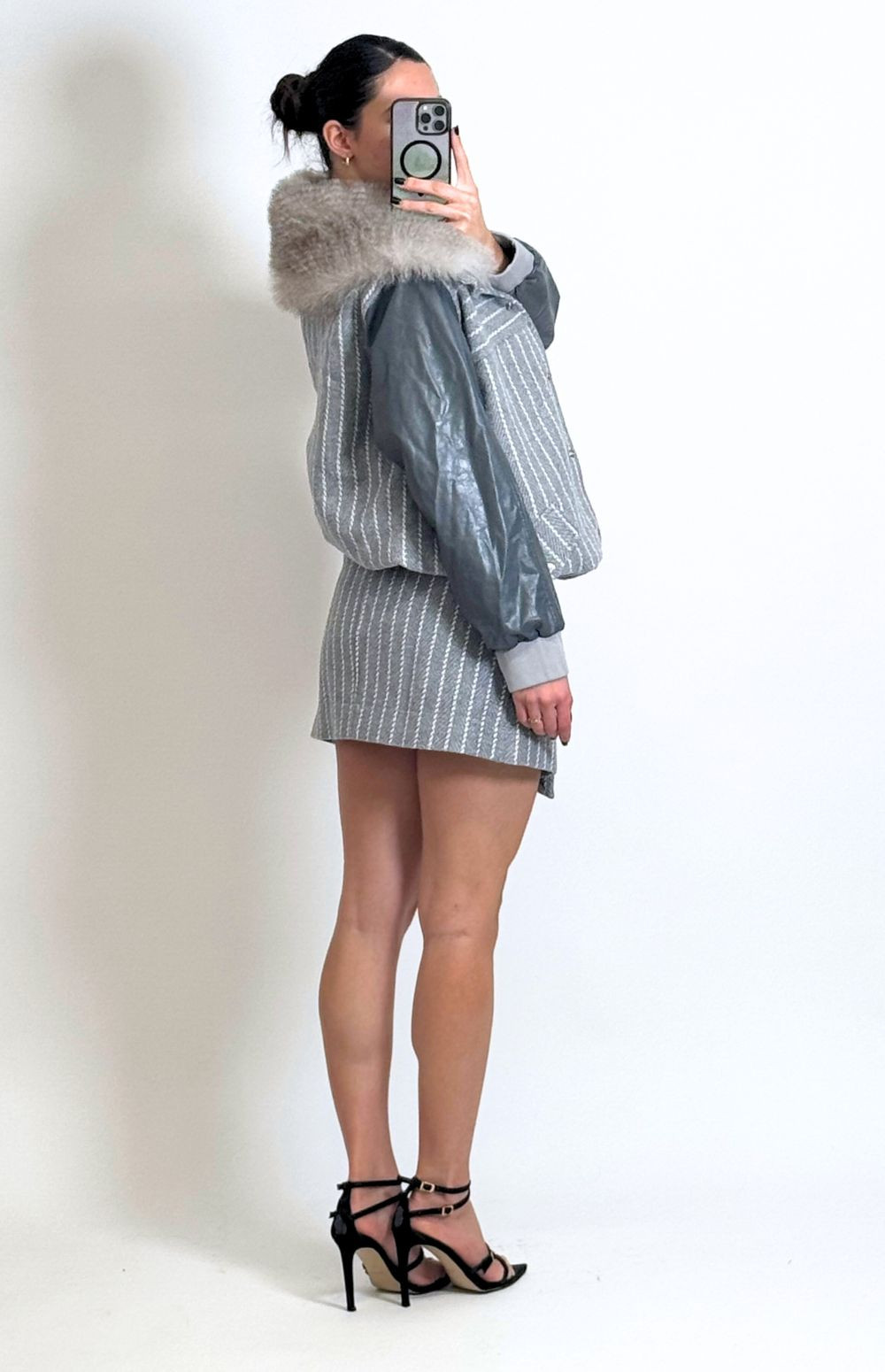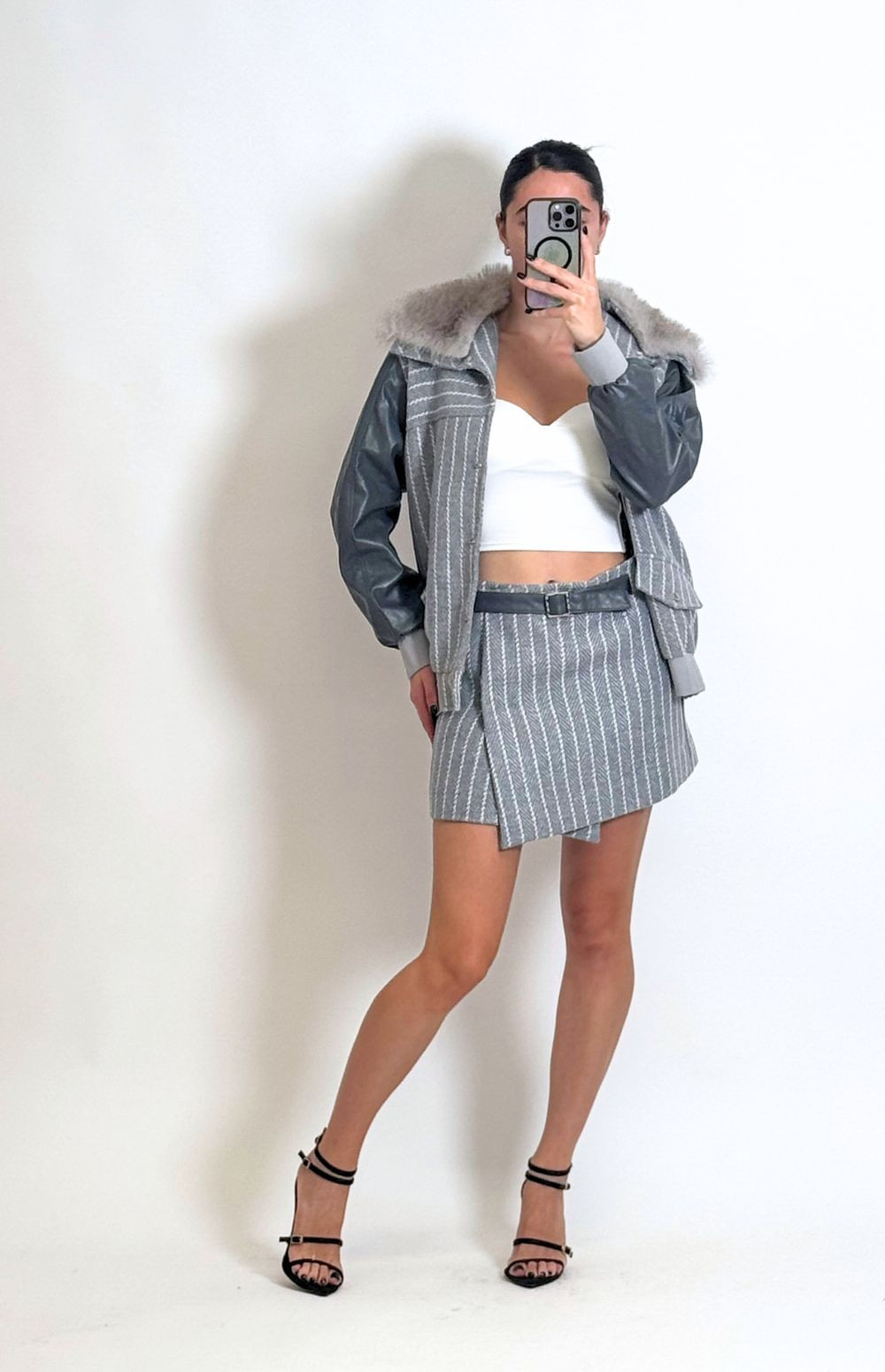 Women's Long Striped Coat & Asymmetrical Mini Skirt