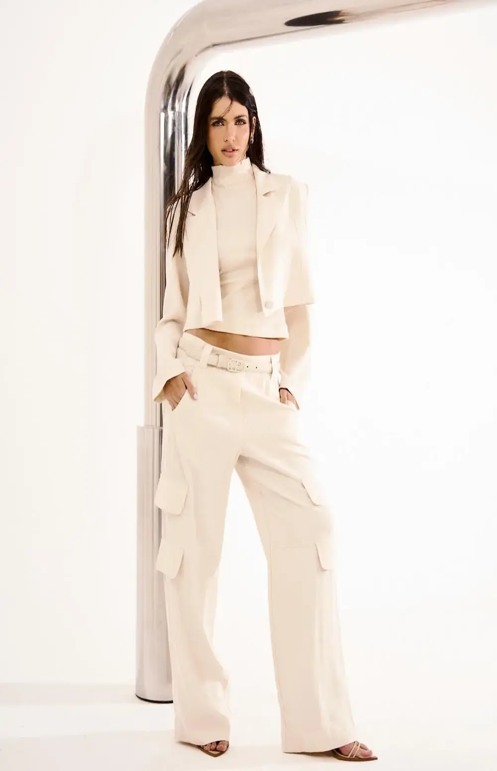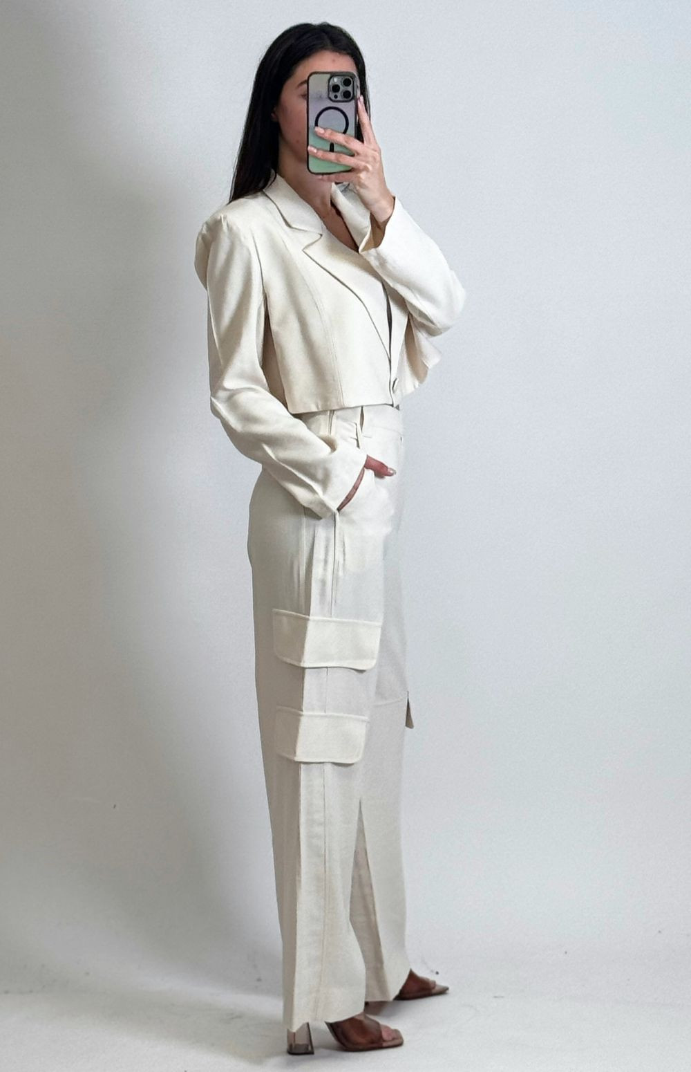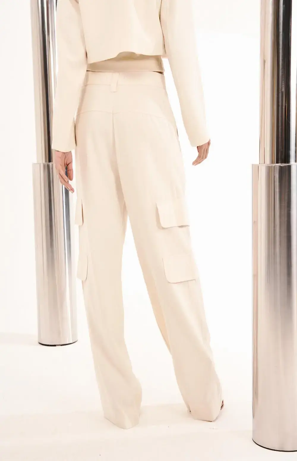 Wide-leg cargo pants (wide, straight legs) for a fluid, elegant fit. High-waisted and long.
