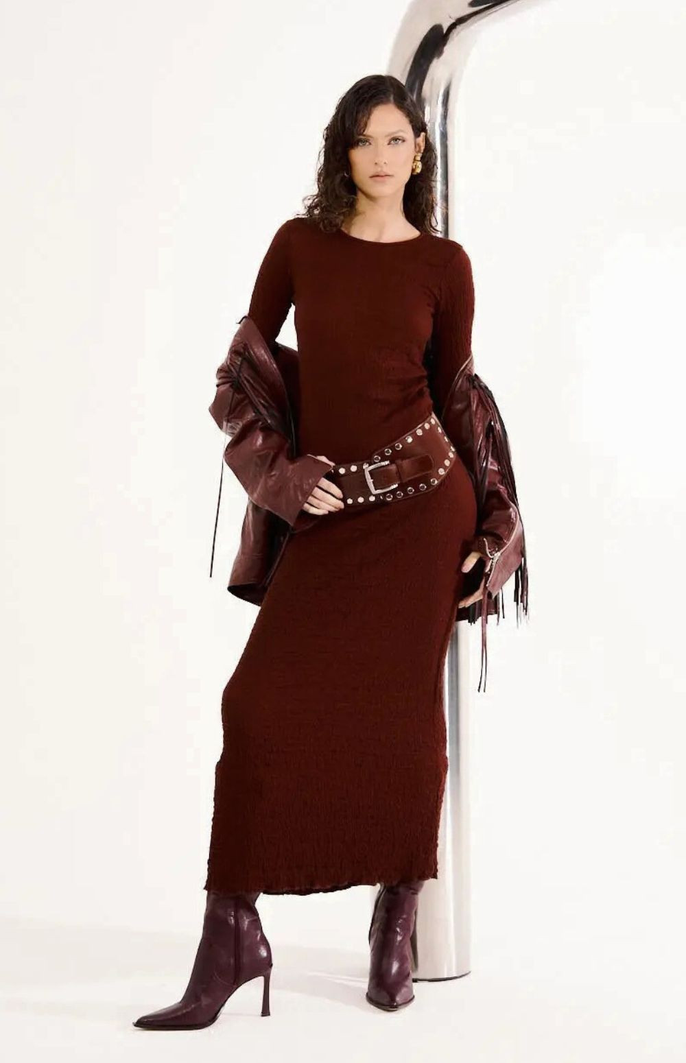 This Long Skirt is the perfect base for REBEL CITY looks that combine sophistication with an irresistible touch. Its elongated silhouette and textured knit create an elegant and versatile look, ready to be styled with a rebellious attitude or chic minimalism.