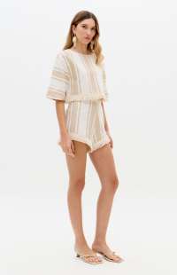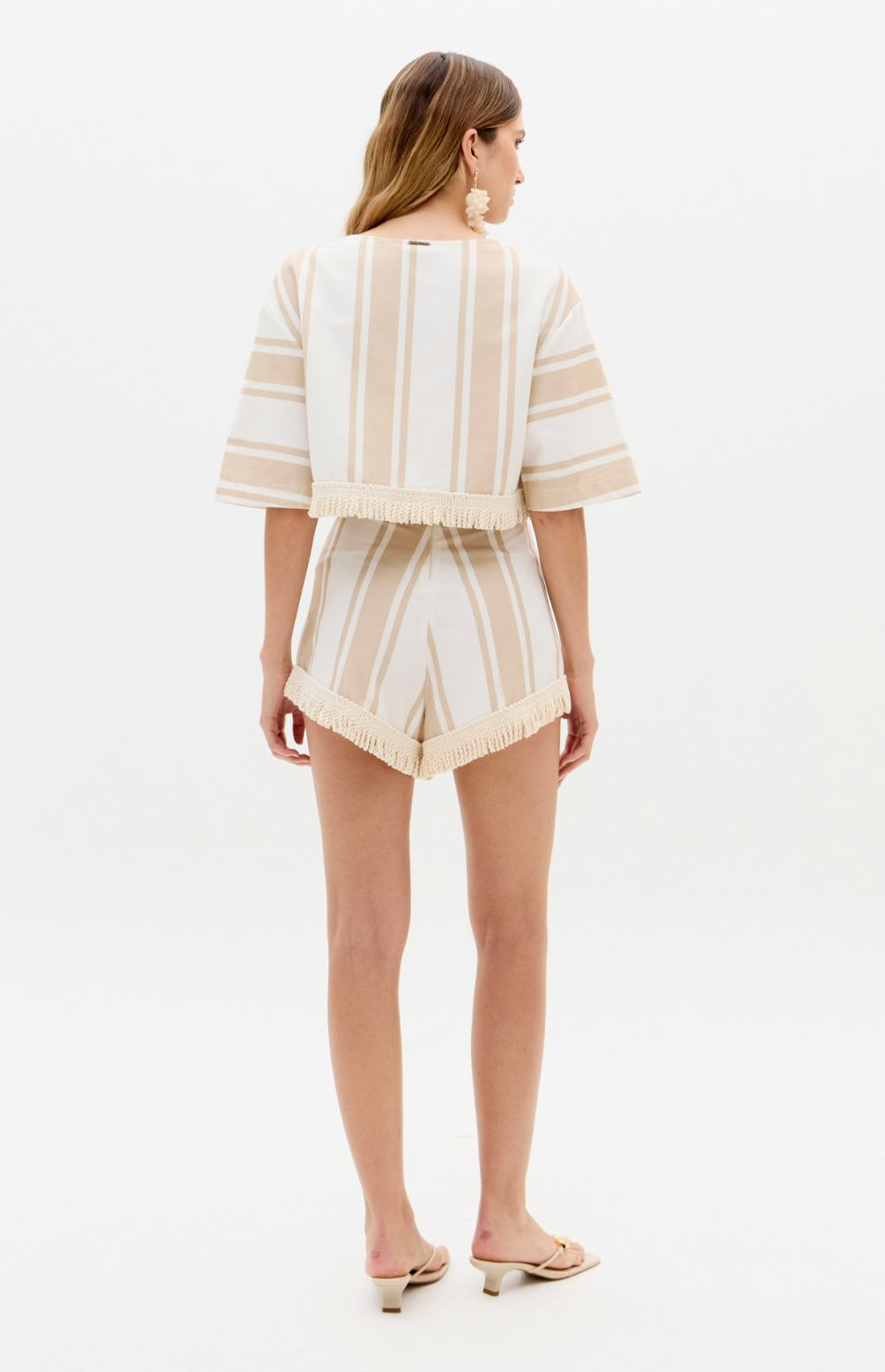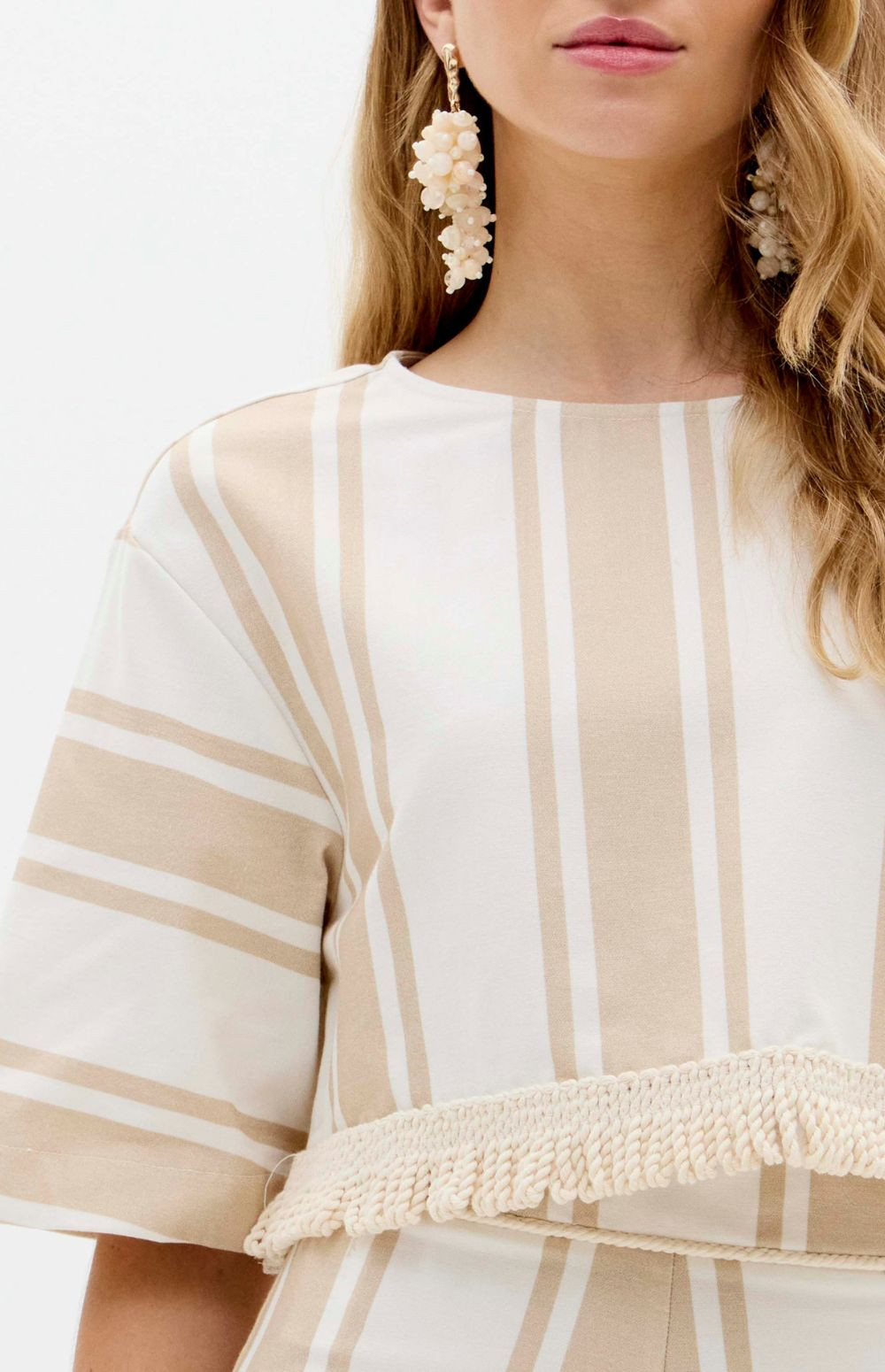Short-sleeved blouse with fringe.
