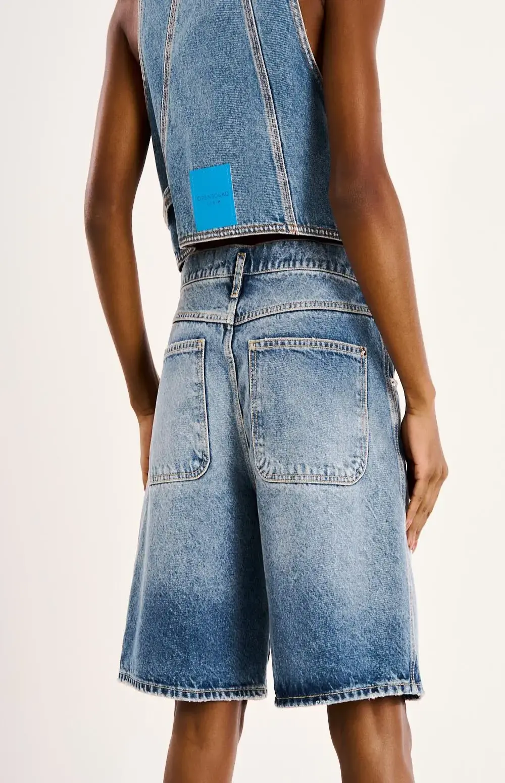 Essentially urban with an authentic street vibe, the Straight Bermuda Jeans are the key piece for creating bold REBEL CITY looks. Their faded wash lends a cool, vintage touch, while the straight, comfortable cut allows for versatile combinations, from casual casual to sophisticated high-low.