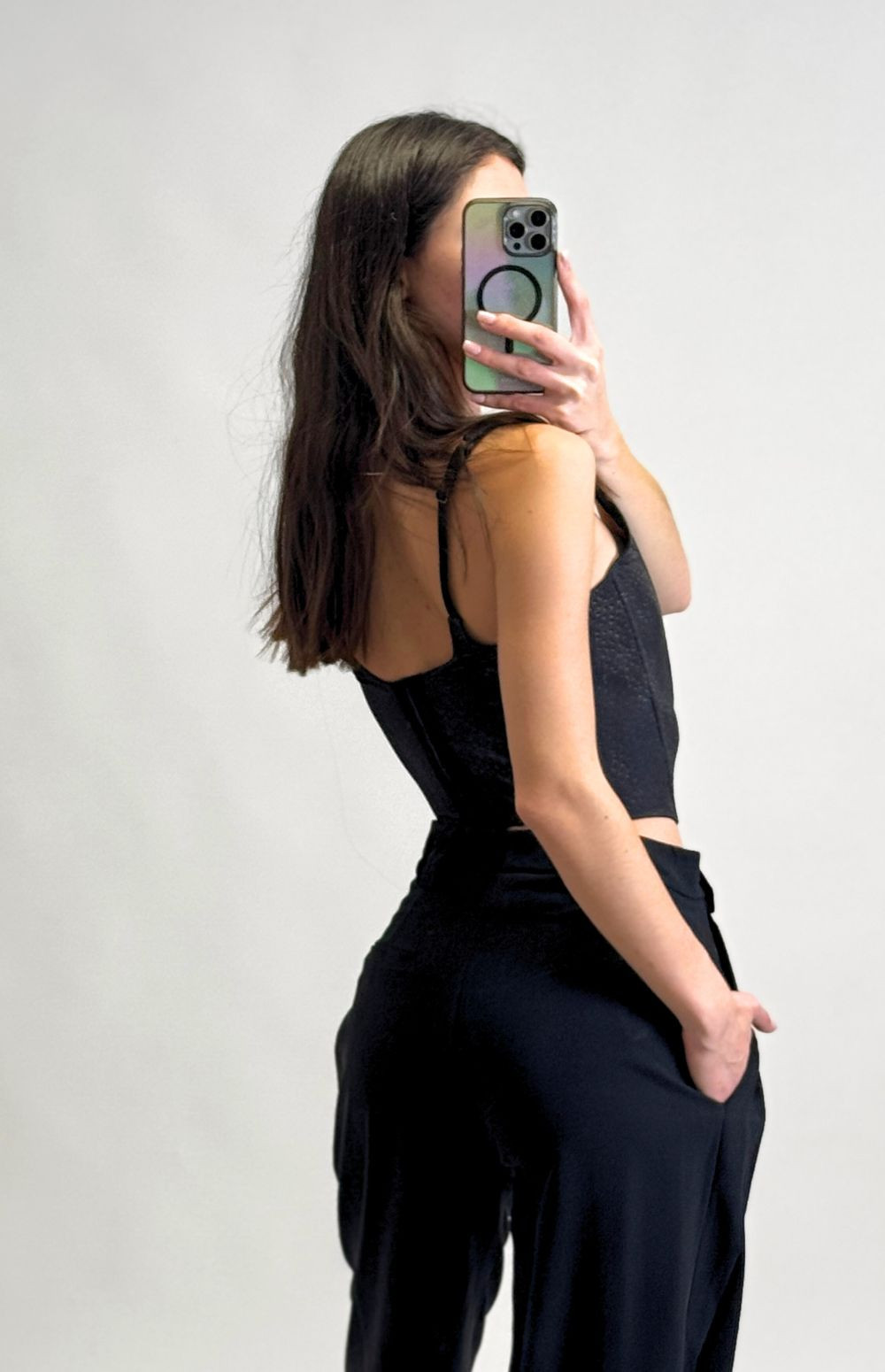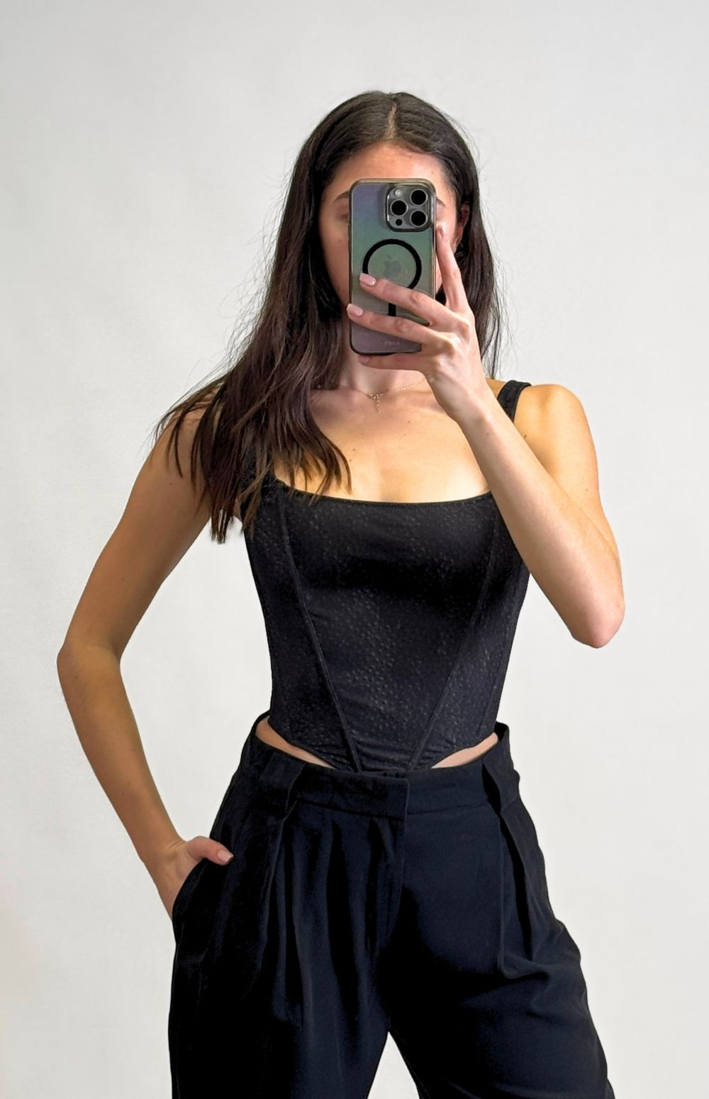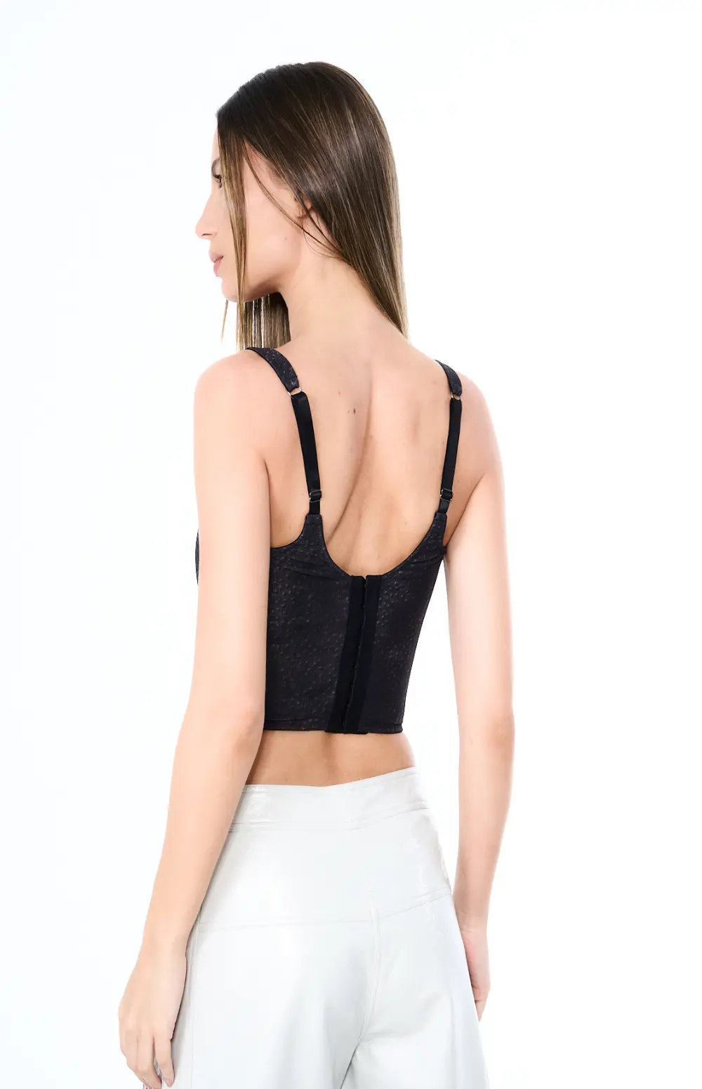 The Corset Top is the perfect piece for a modern and bold look. Its unique and sophisticated design, with a corset shape and exclusive print options, adds a touch of sensuality and attitude to any outfit. Made from a blend of polyester, elastane, and polyamide, it offers comfort, flexibility, and a flawless fit, ideal for creating versatile looks full of personality.
