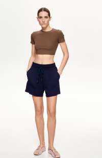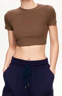 Cotton cropped top with crew neck and short sleeves.