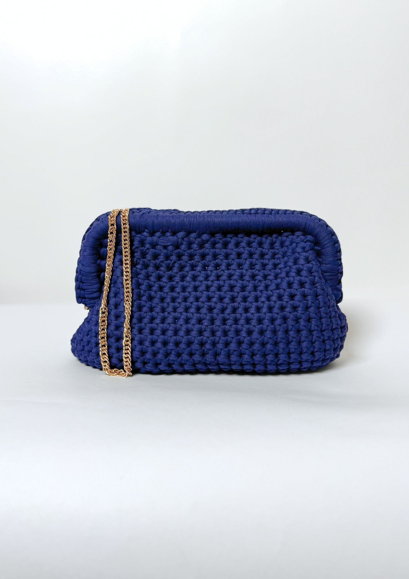 CROCHET LOOK CLUTCH BAG | NAVY BLUE