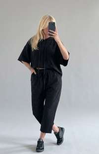 The pants have an elastic waistband with adjustable drawstring, side pockets and a slightly tapered leg for a comfortable and modern fit.
