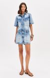 Crafted from rigid light-wash denim, it features a button-up silhouette with a classic spread collar and pockets