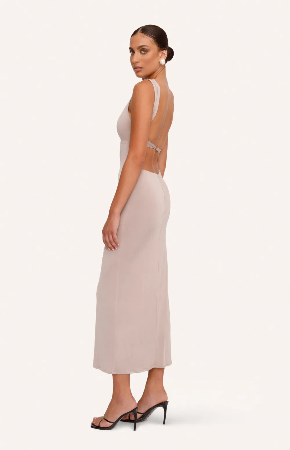 Super fitted midi dress, Emily with an open back is here for your favorite moments. In a black shade for an easy-to-wear yet classy vibe, while with the right accessories you can easily go for a day to night look. Borrow the dress from the runway and style yours with your fresh point of view.