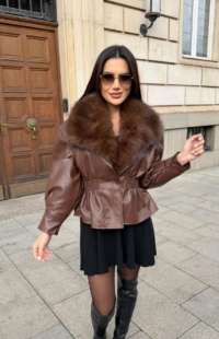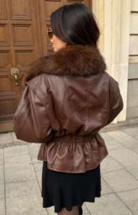 FAUX LEATHER JACKET WITH FUR & CINCHED WAIST