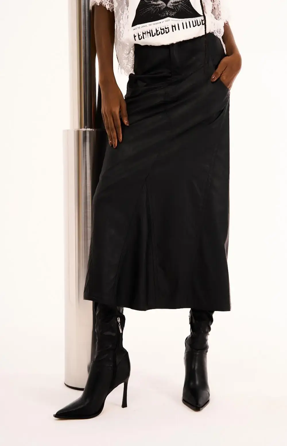 Long Faux Leather Skirt