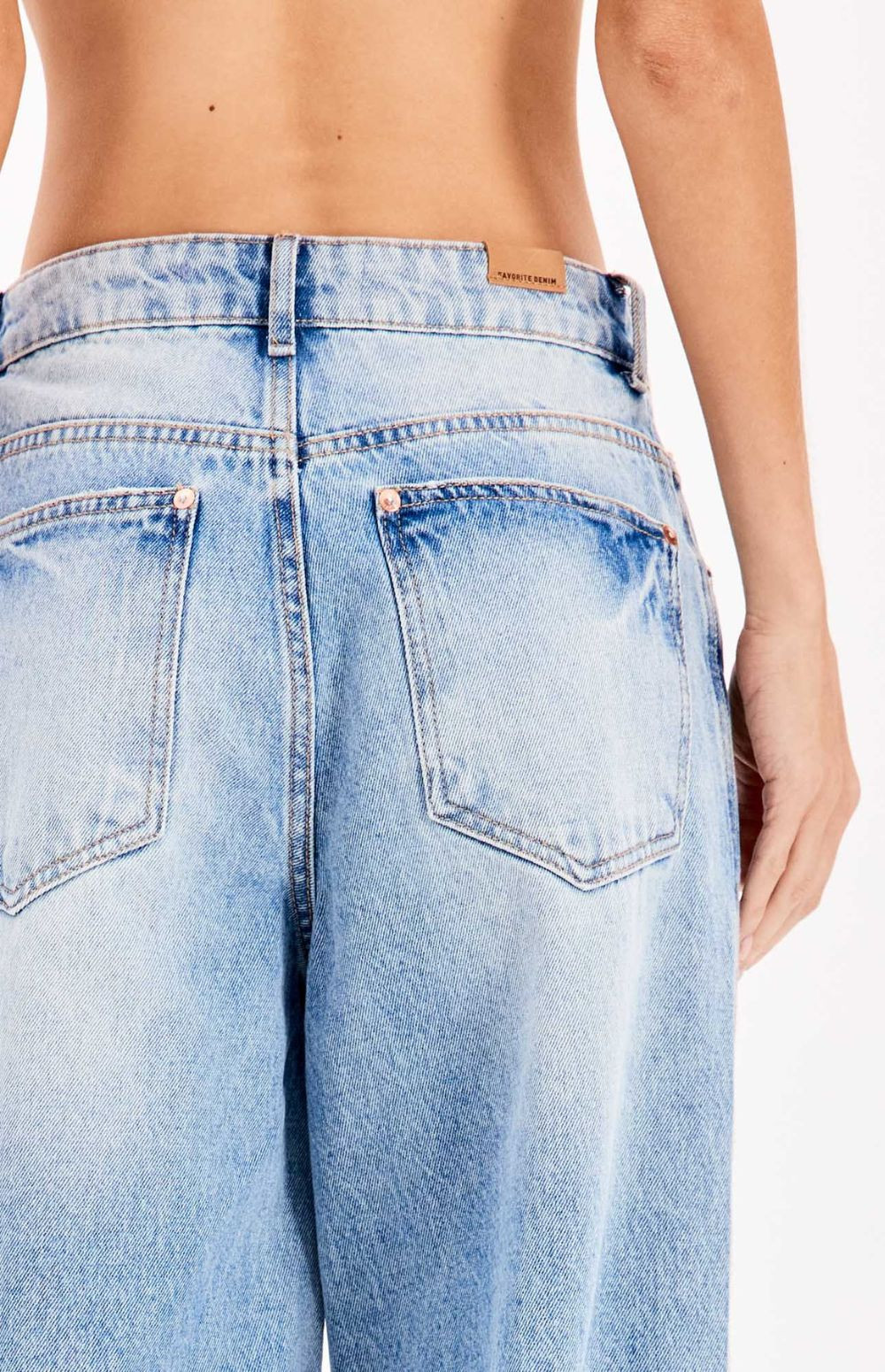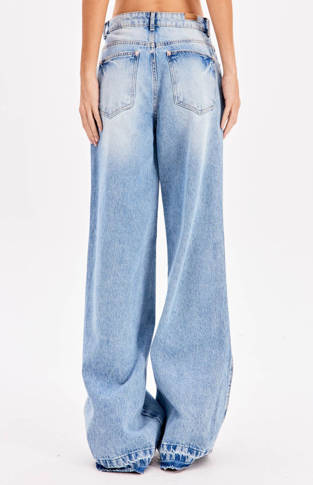 The jeans don't have noticeable stretch, giving them a more structured fit, true to the retro style of the 90s.