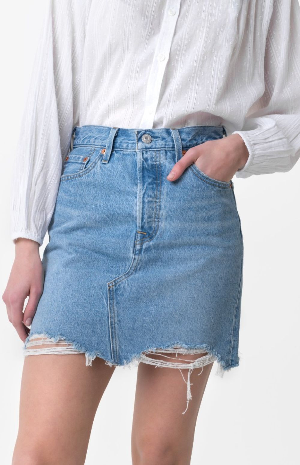 The Levi's raw-cut, high-waisted skirt. Made of 100% cotton.