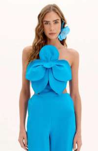 Design: A strapless style featuring a striking 3D flower application on the front