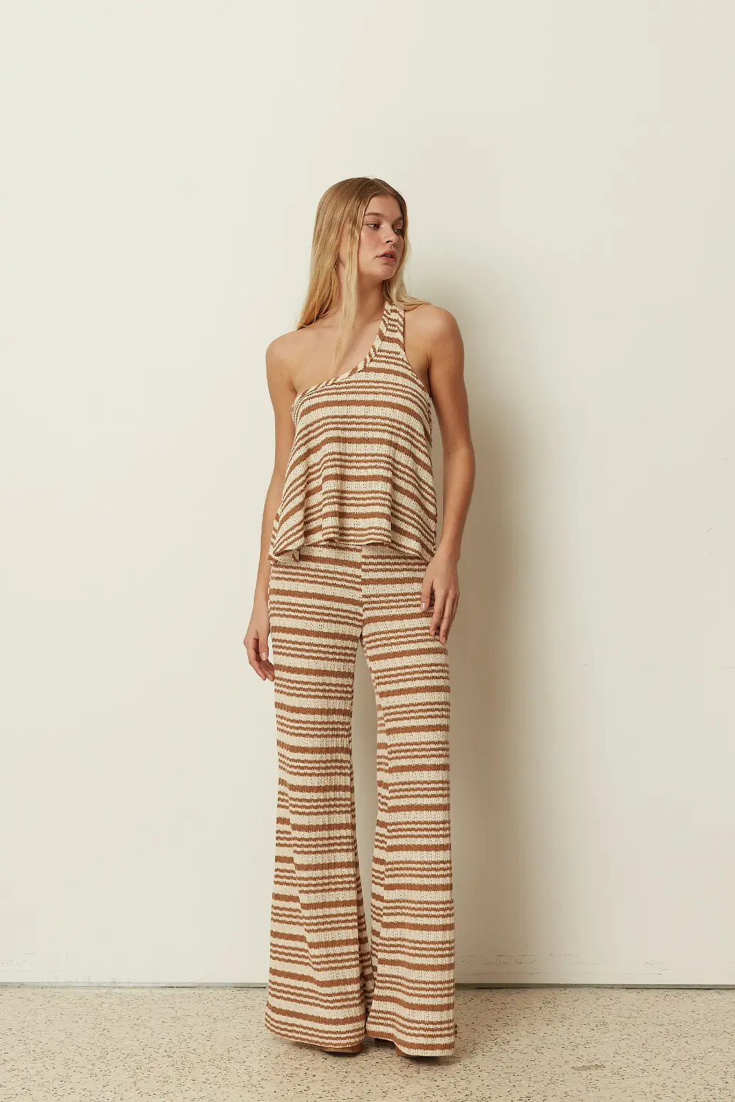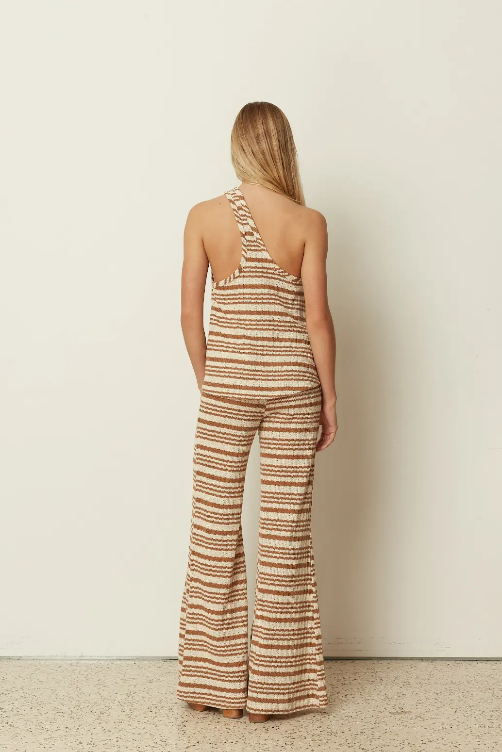 ckontova knitted cotton pants in flared design and striped print