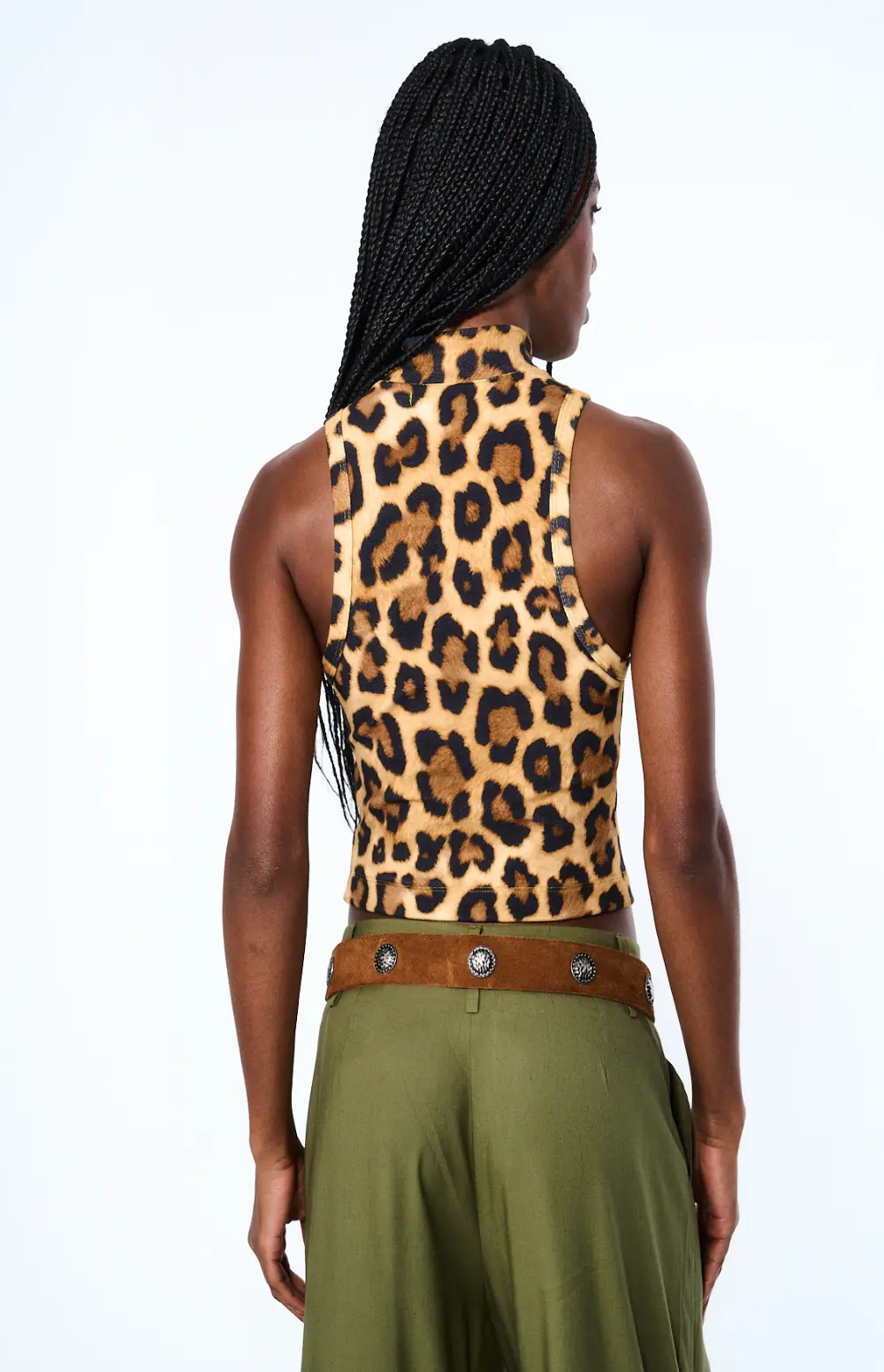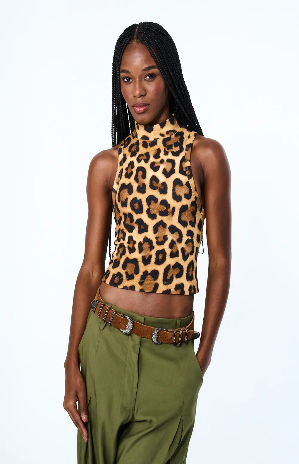 The Leopard Print Turtleneck Top is the perfect piece for a modern and bold look. Its unique and stylish leopard print design and high collar add a touch of sensuality and attitude to any outfit. Made from a cotton and viscose blend, it offers comfort and a flawless fit, ideal for creating versatile looks full of personality.