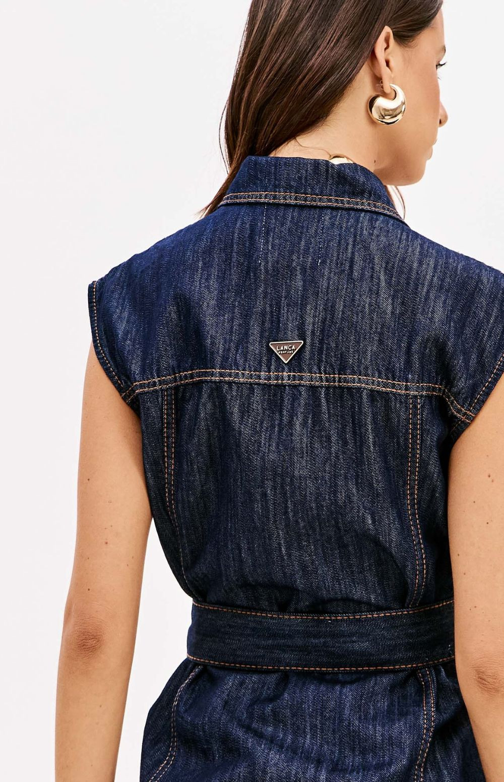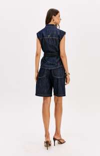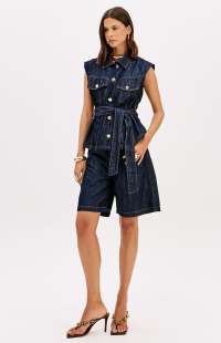 Long denim vest with buttons.
