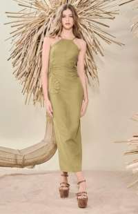Long Linen Dress with Crochet Detail