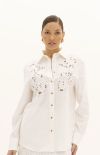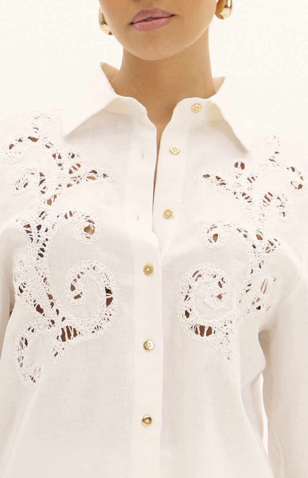 Elevate your everyday wardrobe with this sophisticated oversized poplin shirt, a perfect blend of classic tailoring and intricate artistry. Crafted from 100% premium cotton, this crisp white shirt features a natural finish and an exclusive tonal cutwork embroidery design that draws inspiration from timeless cashmere patterns.