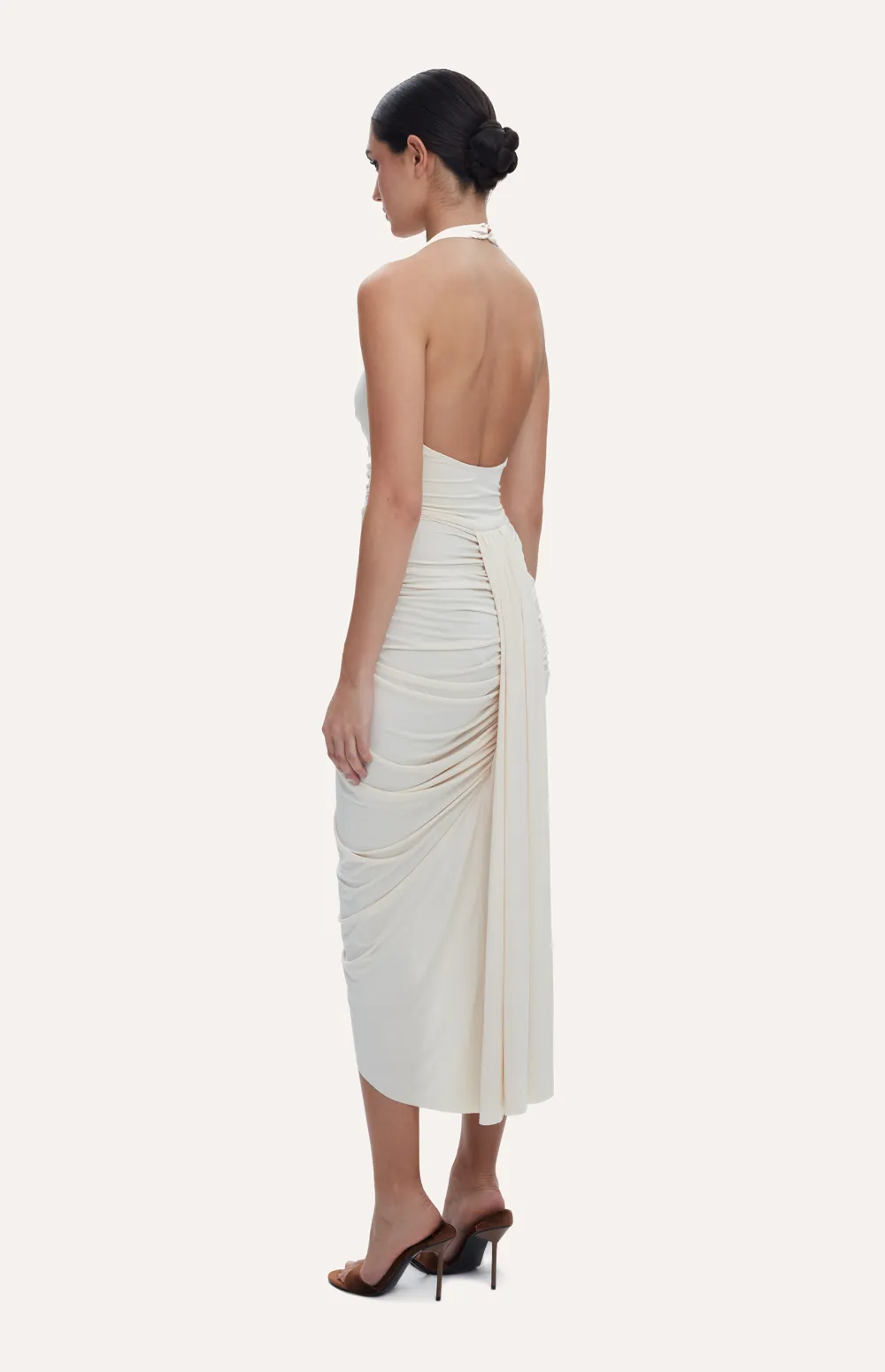 This corset midi dress is a bold expression of modern femininity. It sculpts the silhouette with a structured bodice and front hook and eye closure, blending vintage inspiration with sleek design. Made from super jersey, it features an open back for an alluring finish. Whether it’s a casual outing or a special event, this piece fits the moment.