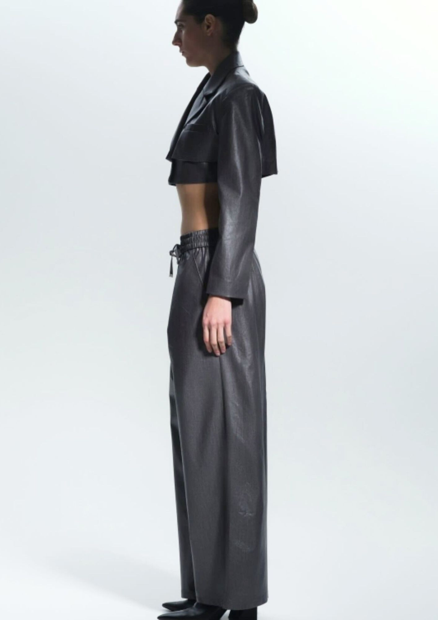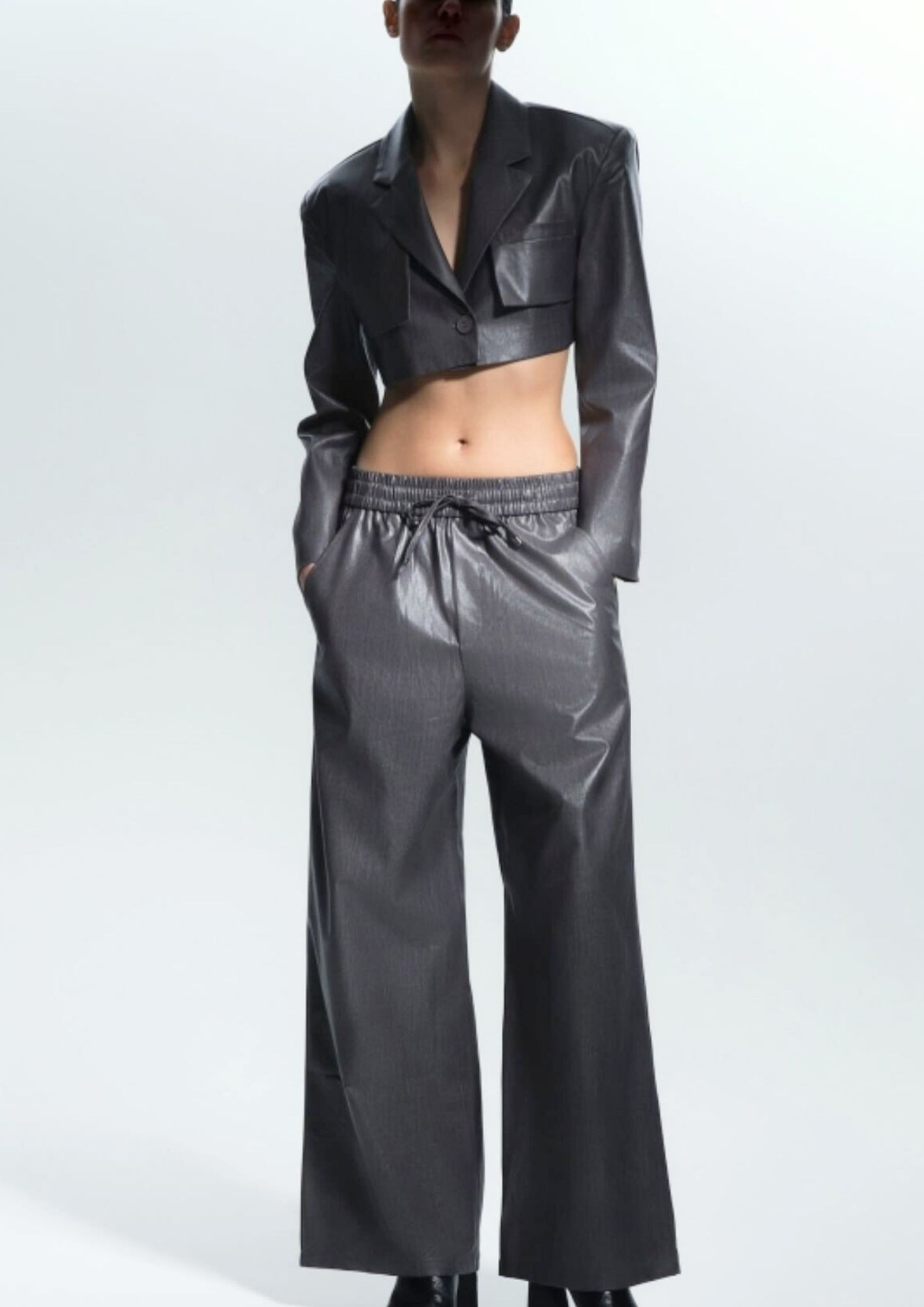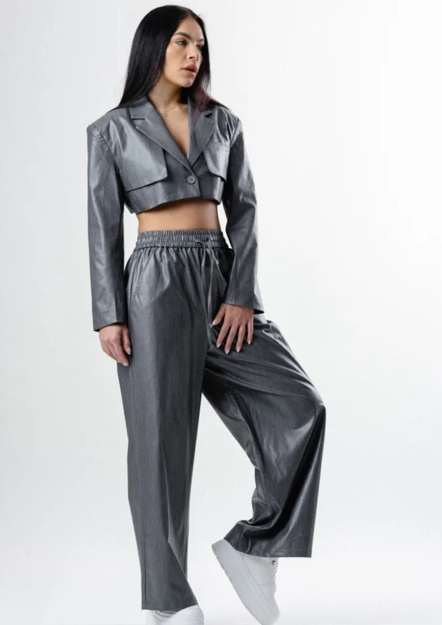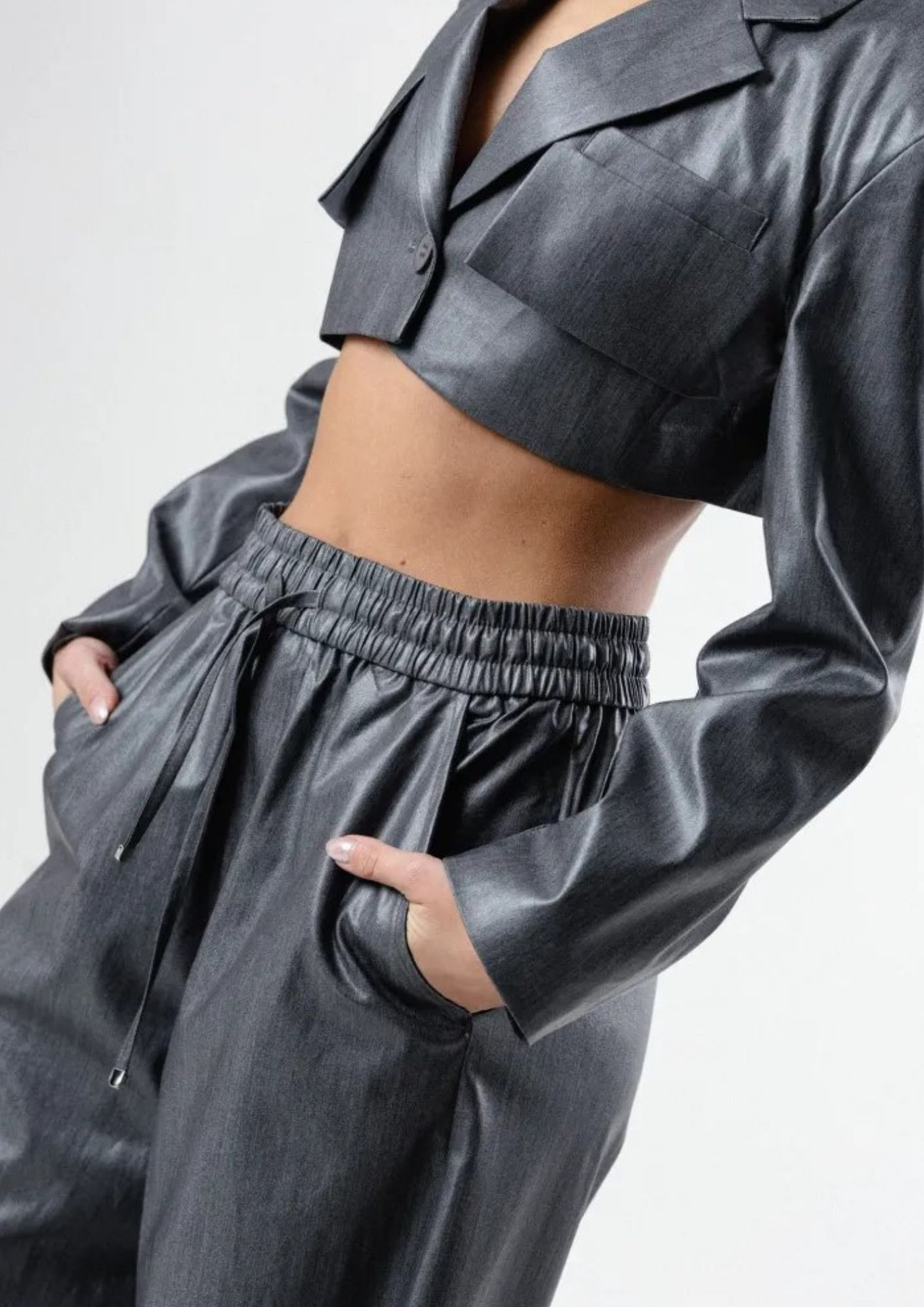 Metallic effect cropped jacket & elastic waistband pants
