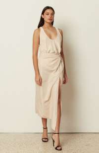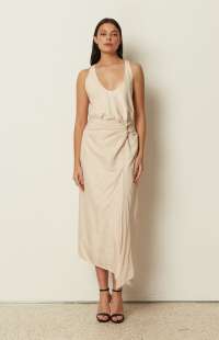 A sleek statement by ckontova, this wrap midi skirt is designed to tie at the waist and drape fluidly over the body for a flattering, adjustable fit. Crafted in a smooth satin-like fabric, it features a sculptural side knot and a bold front slit that adds movement and modern allure. Wear it with the matching top for an elevated evening set, or style it with a crisp shirt and heels for refined occasion dressing.