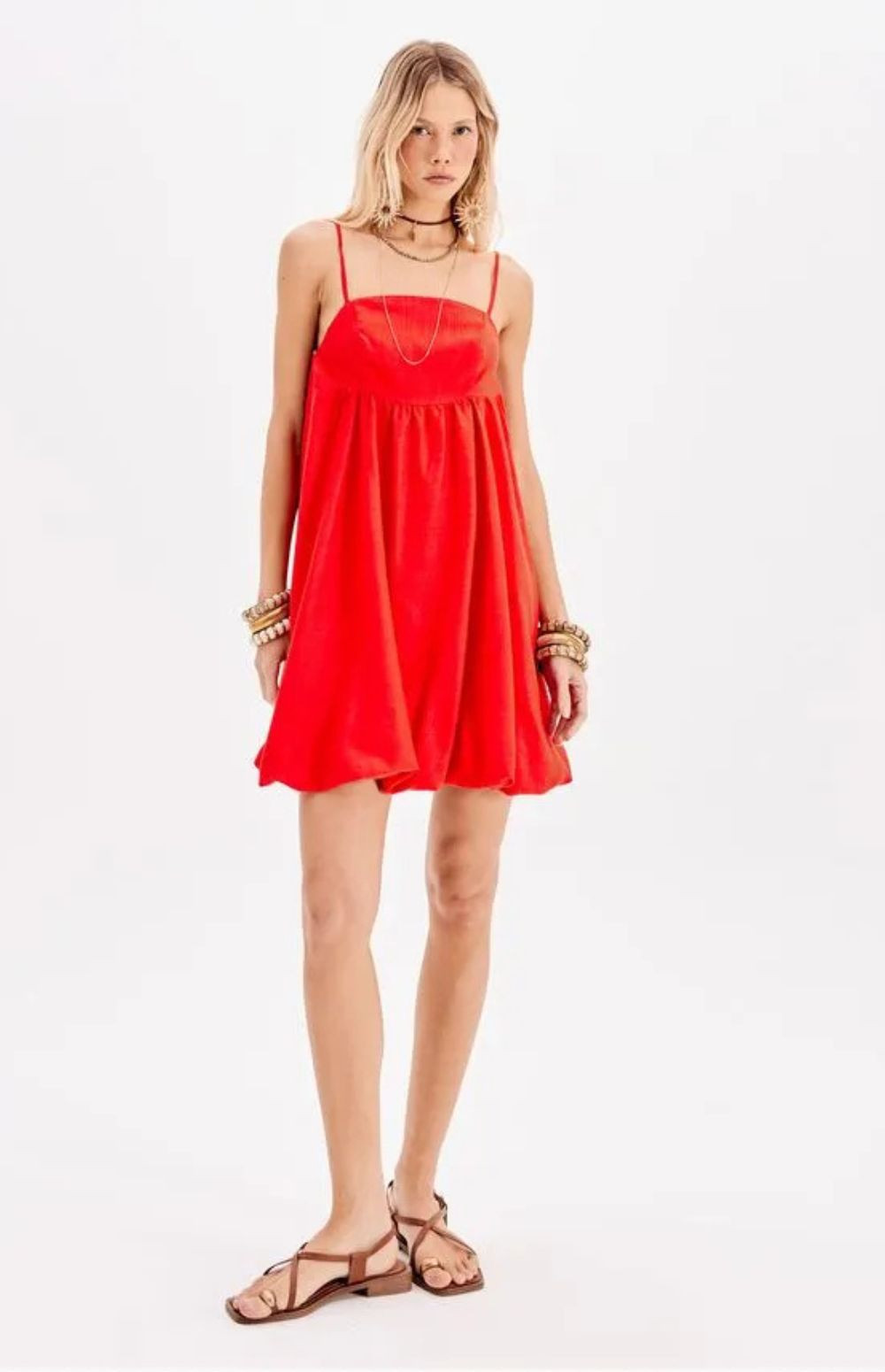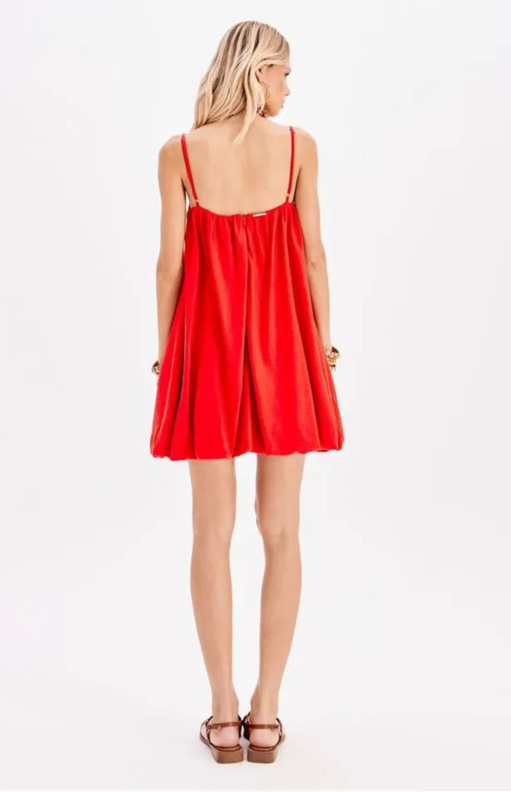 This short linen dress has a balloon silhouette. It's the perfect choice for a feminine and romantic look. The piece features adjustable straps and a convenient zipper closure.