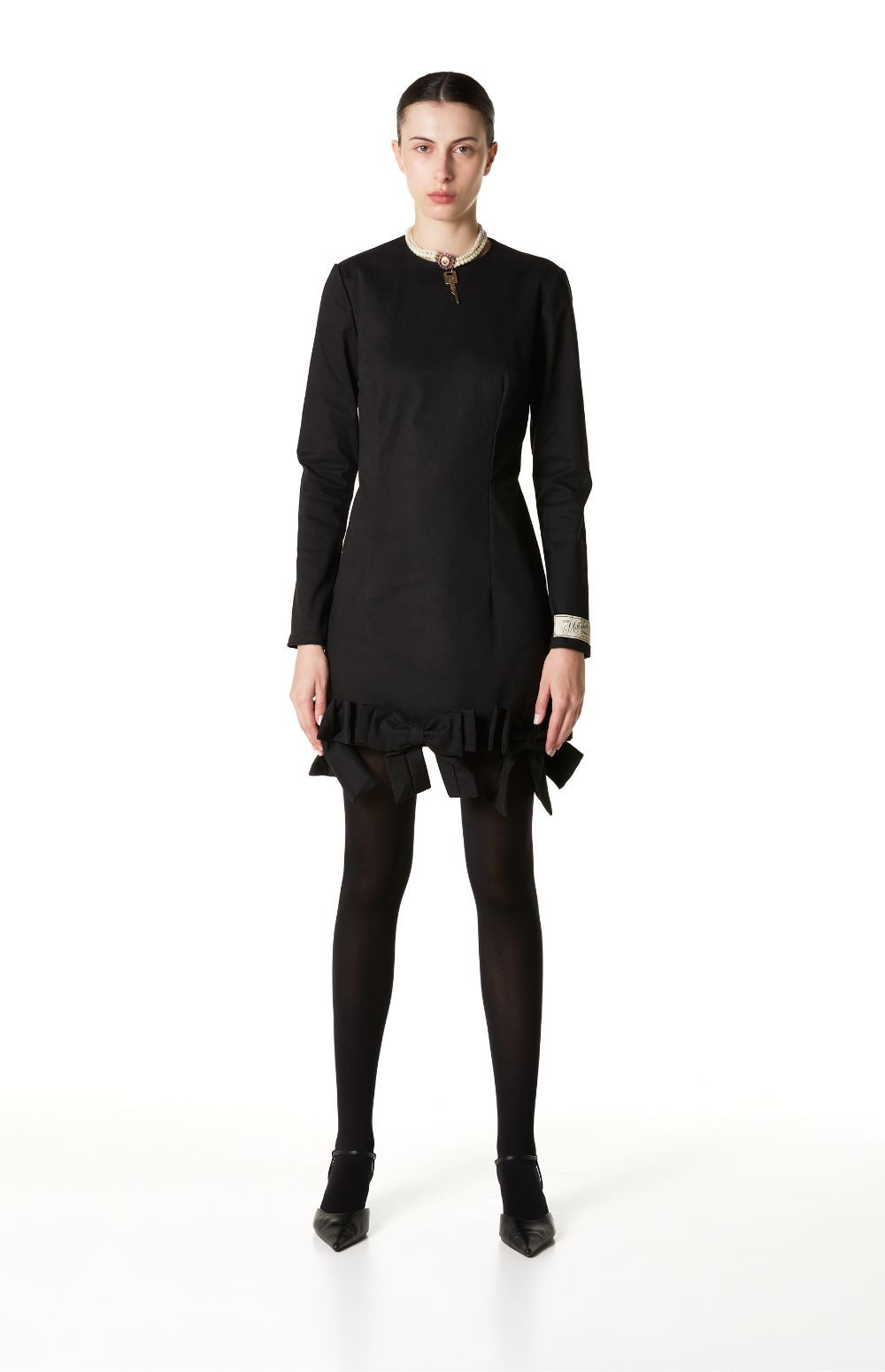 MINI DRESS WITH BOWS | BLACK