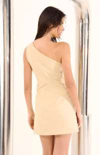 This mini dress with a rebellious attitude! We love the elegance of the one-shoulder combined with the powerful metal detail, which breaks the mold in a super chic way.
